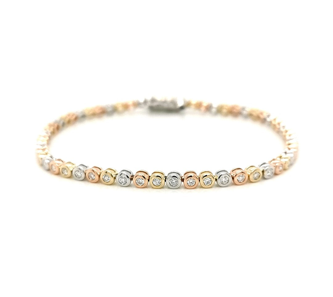 9RYWG BEZEL SET BRACELET WITH RBC 57=1.00CT OW PQ (2115) APPROX 19CM