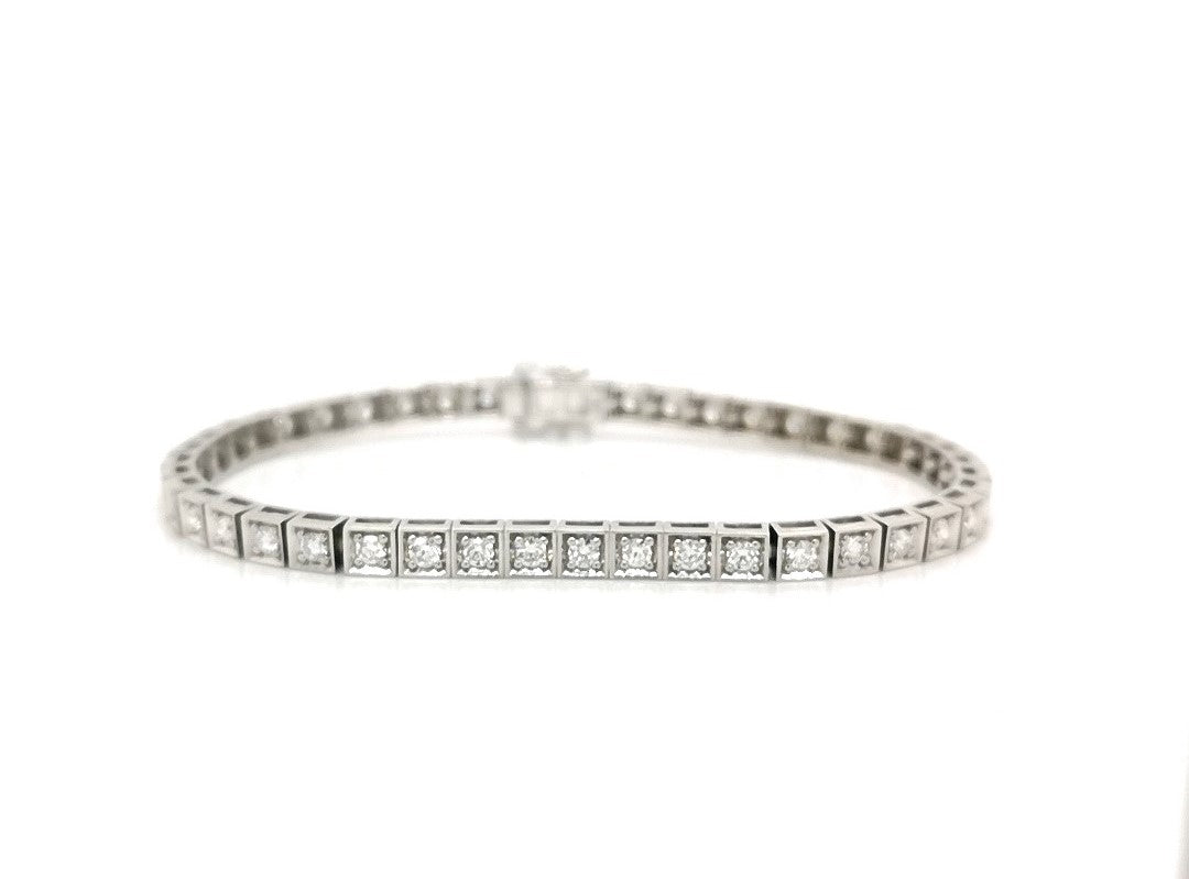 9WG SQUARE LINK BRACELET SET WITH RBC 45=2.00CT WH PQ APPROX 18CM
