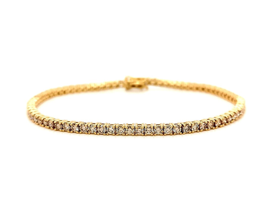 18YG 4 CLAW TENNIS BRACELET SET WITH CHAMPAGNE RBC 75=3.35CT C3-4 APPROX 18CM