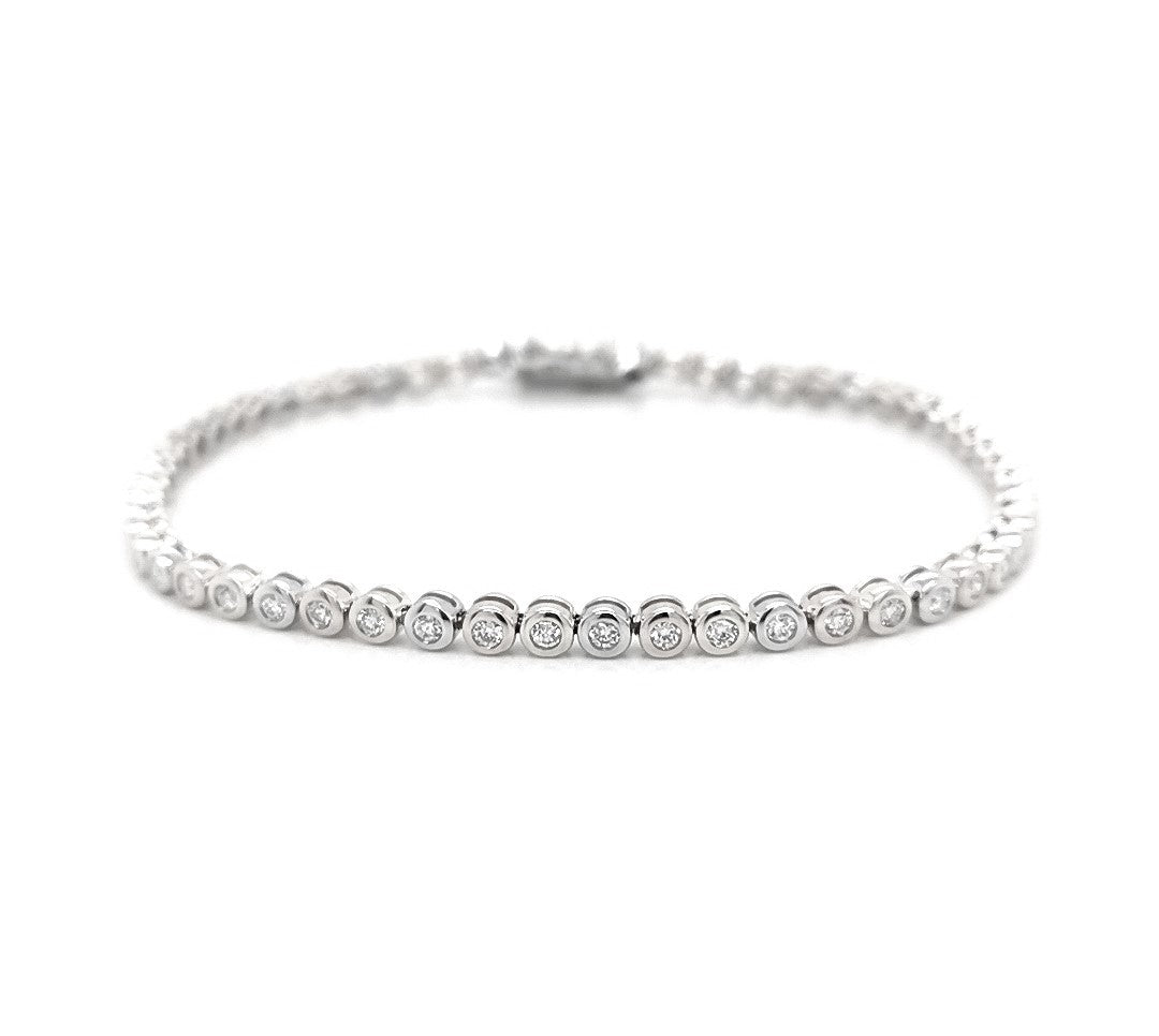9YWG BEZEL SET BRACELET WITH RBC 57=1.00CT GHI+ SI3-P1+ APPROX 19CM