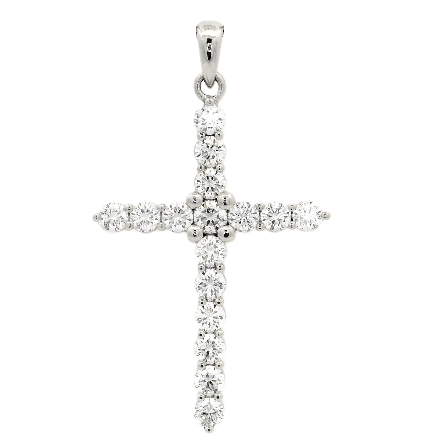 18WG CLAW SET CROSS SET WITH RBC 16=1.00CT WH SI (Approx W20mm x L28mm excluding bail/jump ring)