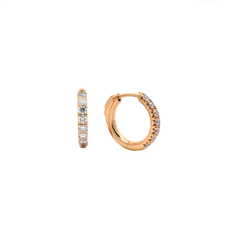 9RG 14MM ROUND HOOPS SET WITH RBC 14=0.50CT WH PQ **PUSH BUTTON CLASP**