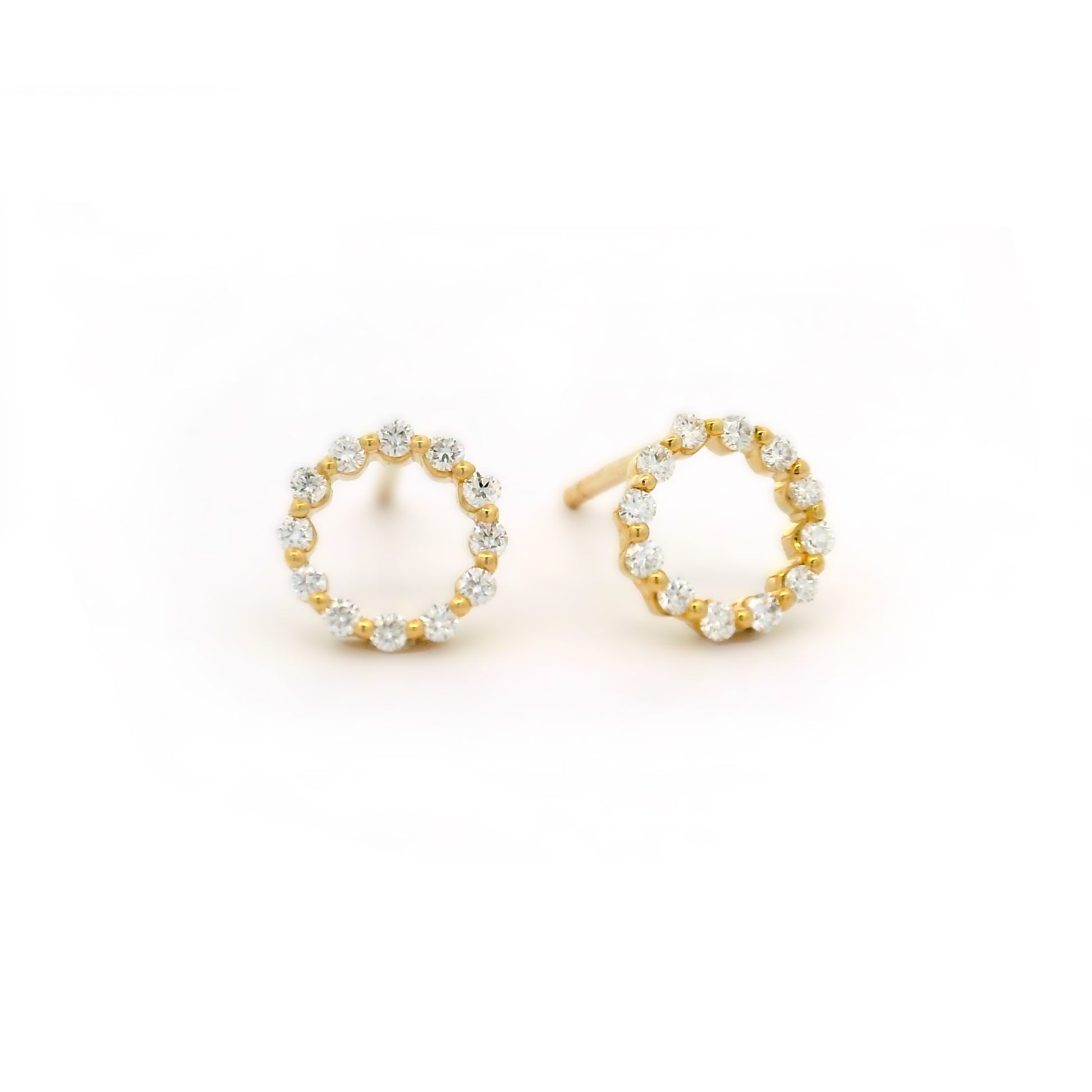9RG OPEN CIRCLE SHARED CLAW STUD EARRINGS SET WITH RBC 24=0.20CT WH PQ