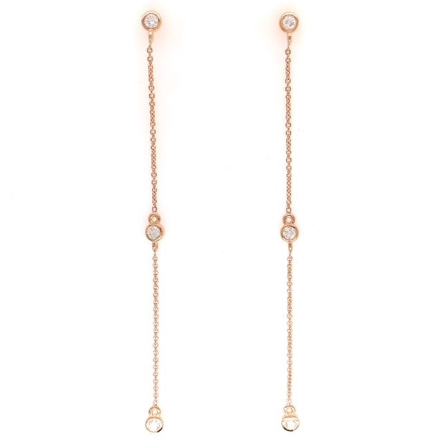 9RG THREE DROP BEZEL SET CHAIN EARRINGS SET WITH RBC 6=0.30CT WH PQ **RG CHAIN**