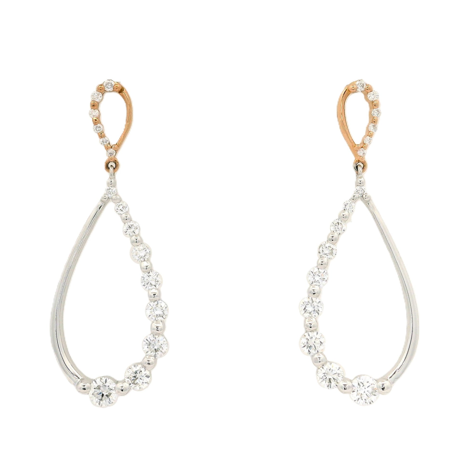 9RWG GRADUATING OPEN DOUBLE TEARDROP EARRINGS SET WITH RBC 30=0.50ct WH PQ **RG SMALL TEARDROP & WG BIG TEARDROP**