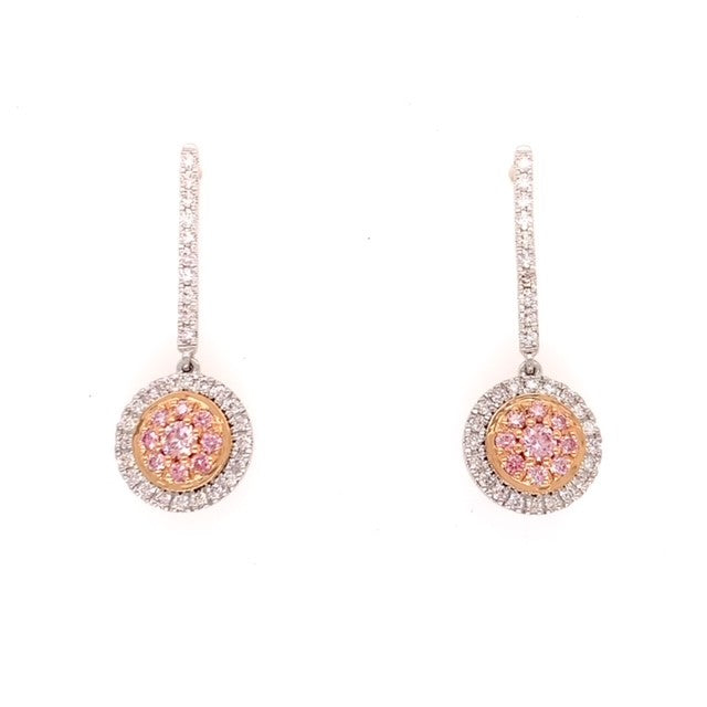 DNO - 2 LEFT** 18WRG CLUSTER DROP EARRINGS RG CENTRE SET WITH RBC 18=0.30ct 6-7P/PP ARGYLE LOT 449437 & 449319 AND RBC 60=0.40CT NCL ARGYLE LOT 448084