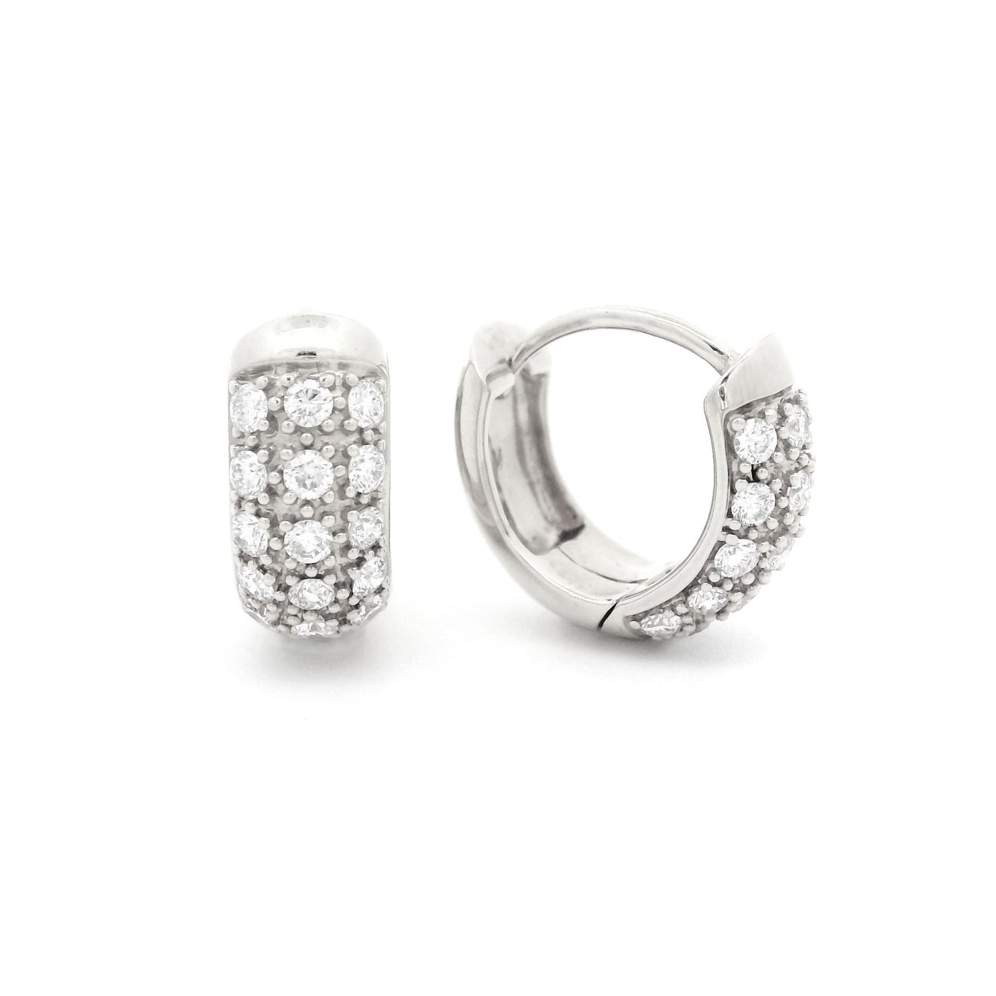 9WG 12MM SMALL PAVE HUGGIE EARRINGS SET WITH RBC 30=0.42CT WH PQ 5MM WIDE
