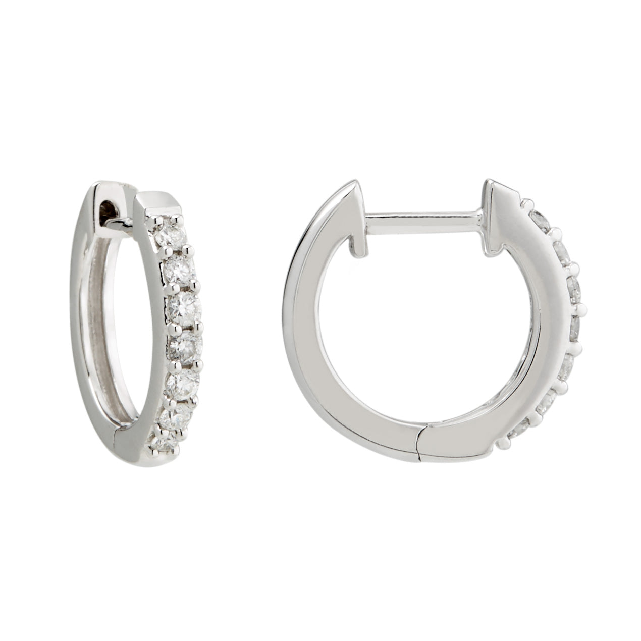 9WG 13MM CLAW SET HUGGIE EARRINGS SET WITH RBC 14=0.25CT WH PQ