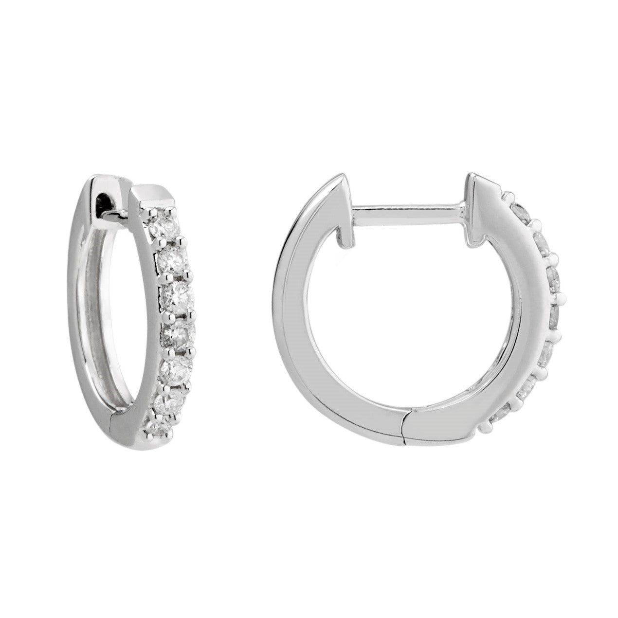 18WG 13MM CLAW SET HUGGIE EARRINGS SET WITH RBC 14=0.25CT DEF VS-SI1+