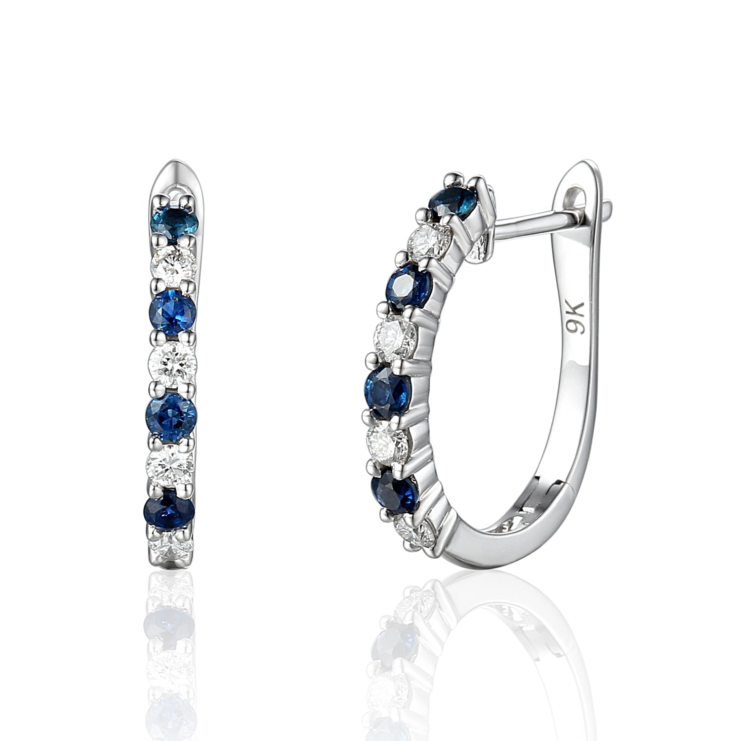 18WG 17x15MM ALTERNATING SHARED CLAW OVAL HOOP EARRINGS SET WITH RBC 8=0.25CT WH SI & 2MM ROUND SAPPHIRES