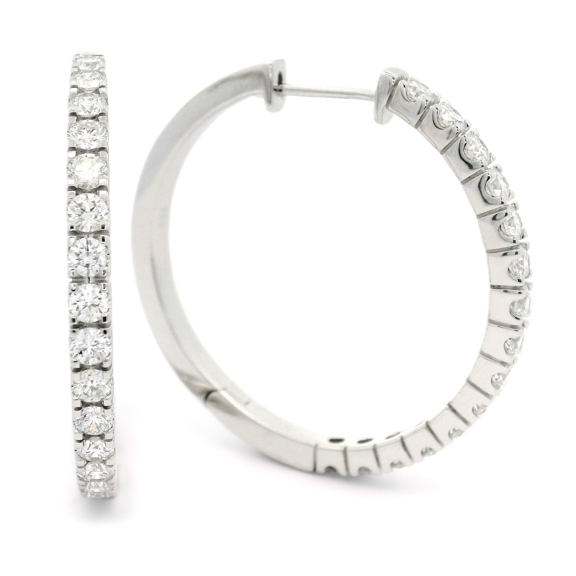 18WG 31MM CLAW SET HUGGIE EARRINGS SET WITH RBC 30=1.50CT WH SI