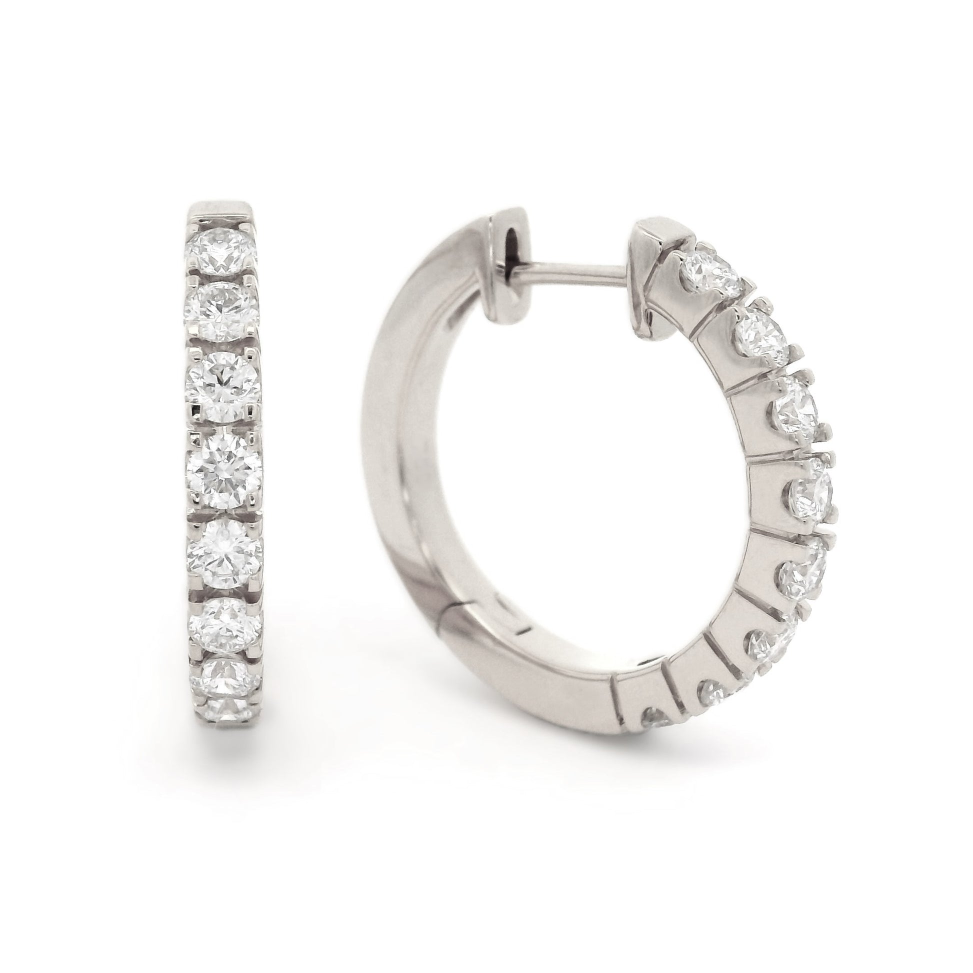 18WG 19MM CLAW SET HUGGIE EARRINGS SET WITH RBC 16=0.80CT WH SI
