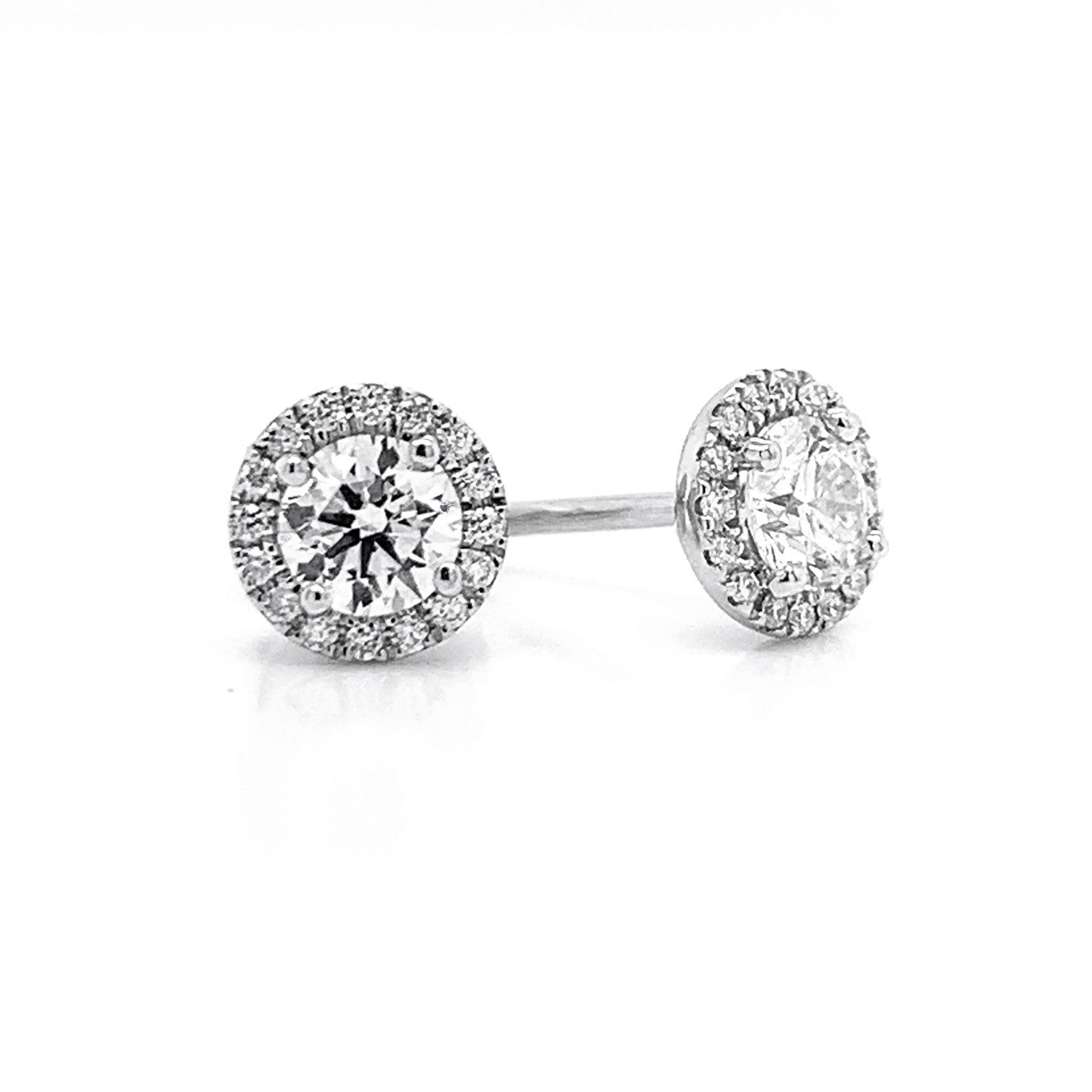 18WG FINE HALO STUD EARRINGS SET WITH RBC 2=0.50CT EFG SI2-3 (9921) & RBC 32=0.08CT WH SI **INCLUDES S&F**
