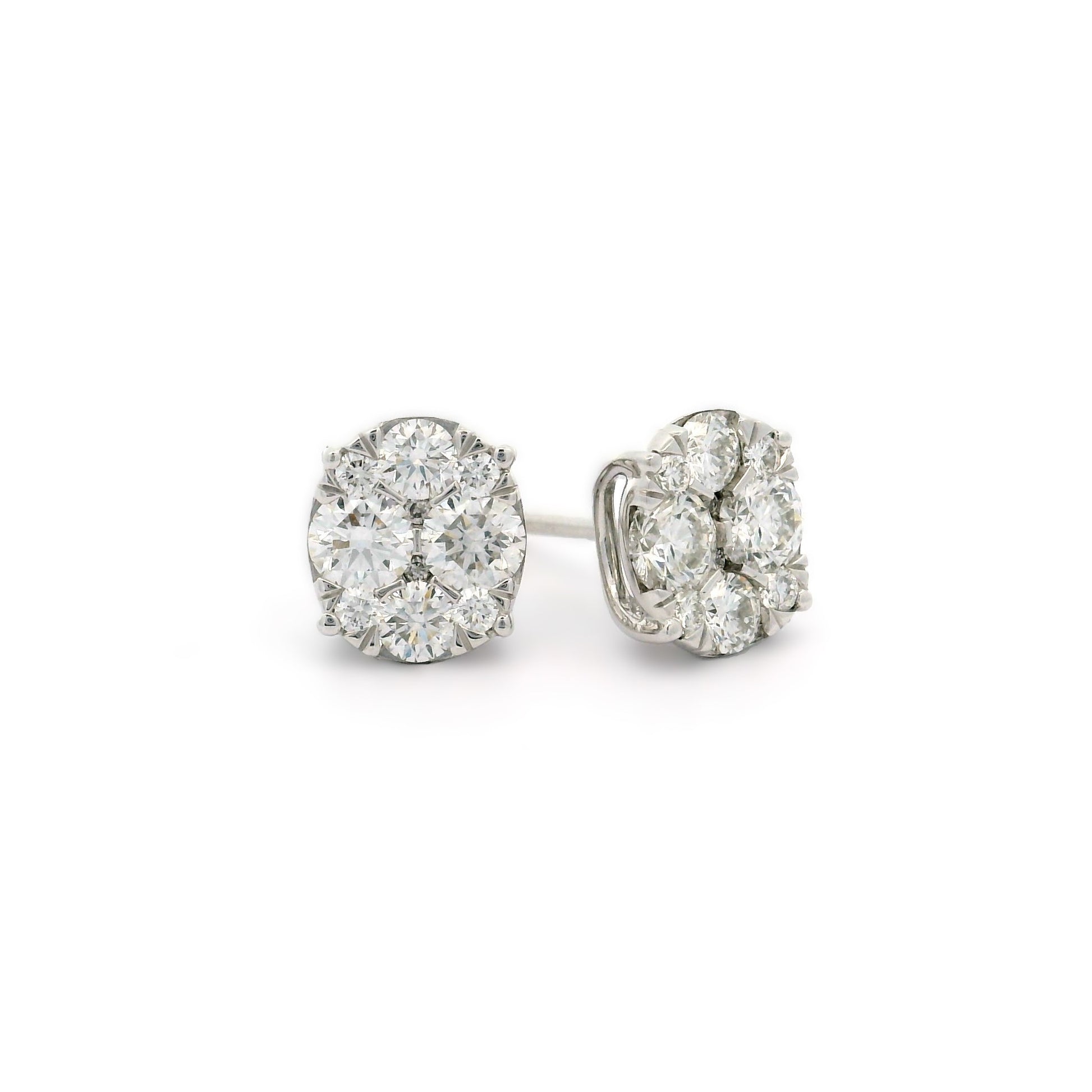 18WG OVAL CLUSTER STUD EARRING SET WITH RBC 20=1.00CT WH SI