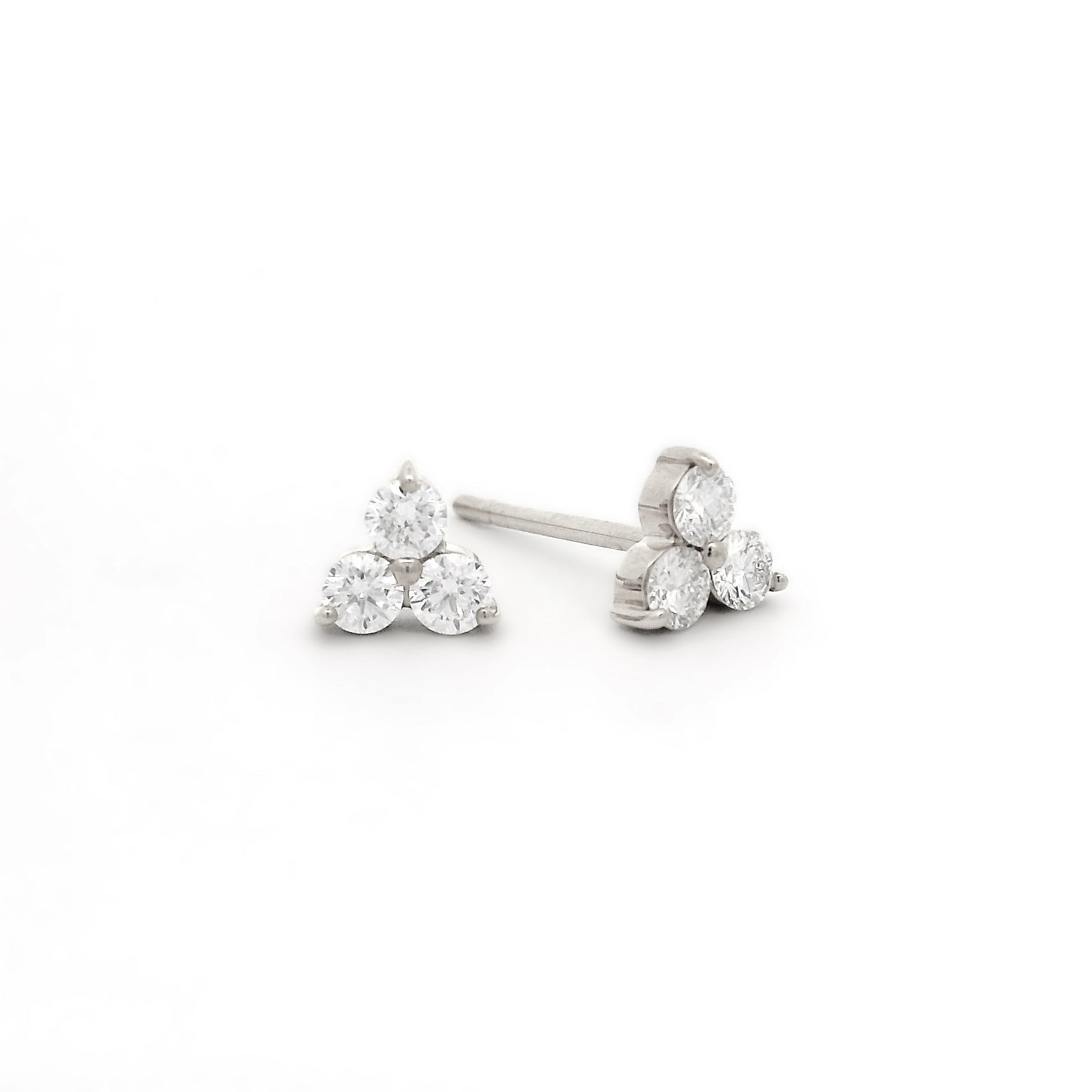18WG THREE DIAMOND STUD EARRINGS SET WITH RBC 6=0.35CT WH SI