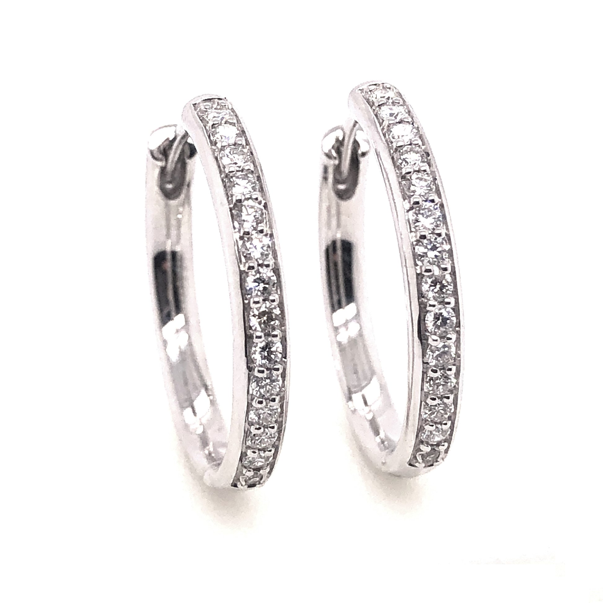 9WG 20MM GRAIN SET HUGGIE EARRINGS SET WITH RBC 28=0.35CT WH PQ