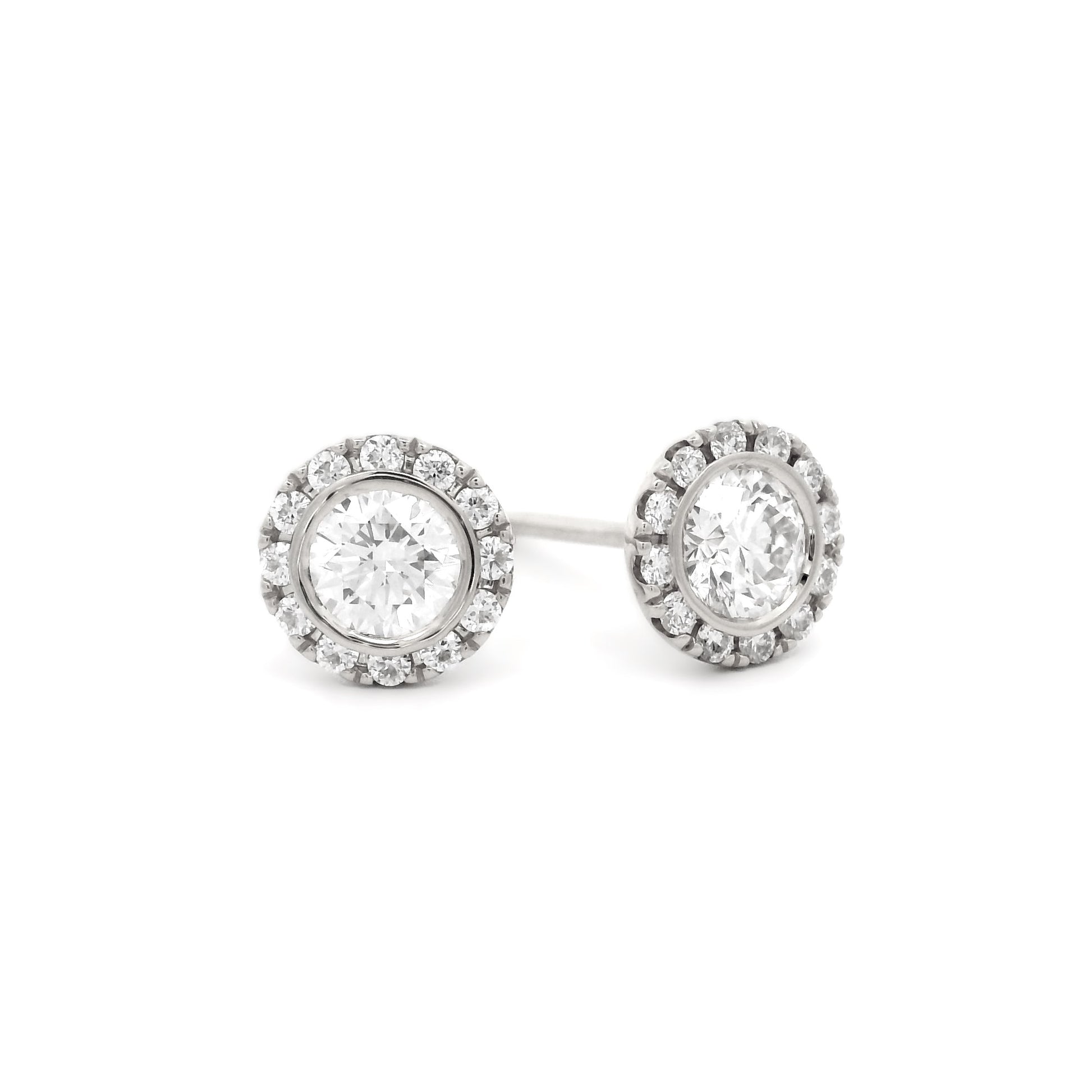 9WG SHARED CLAW HALO STUD EARRINGS SET WITH RBC 24=0.15ct WH PQ SET AND RUBIES ROUND 4MM