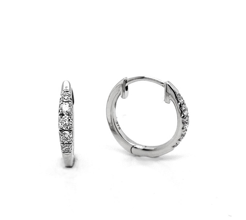 9WG 13MM ROUND HUGGIES SET WITH GRADUATING RBC 10=0.20CT WH SI