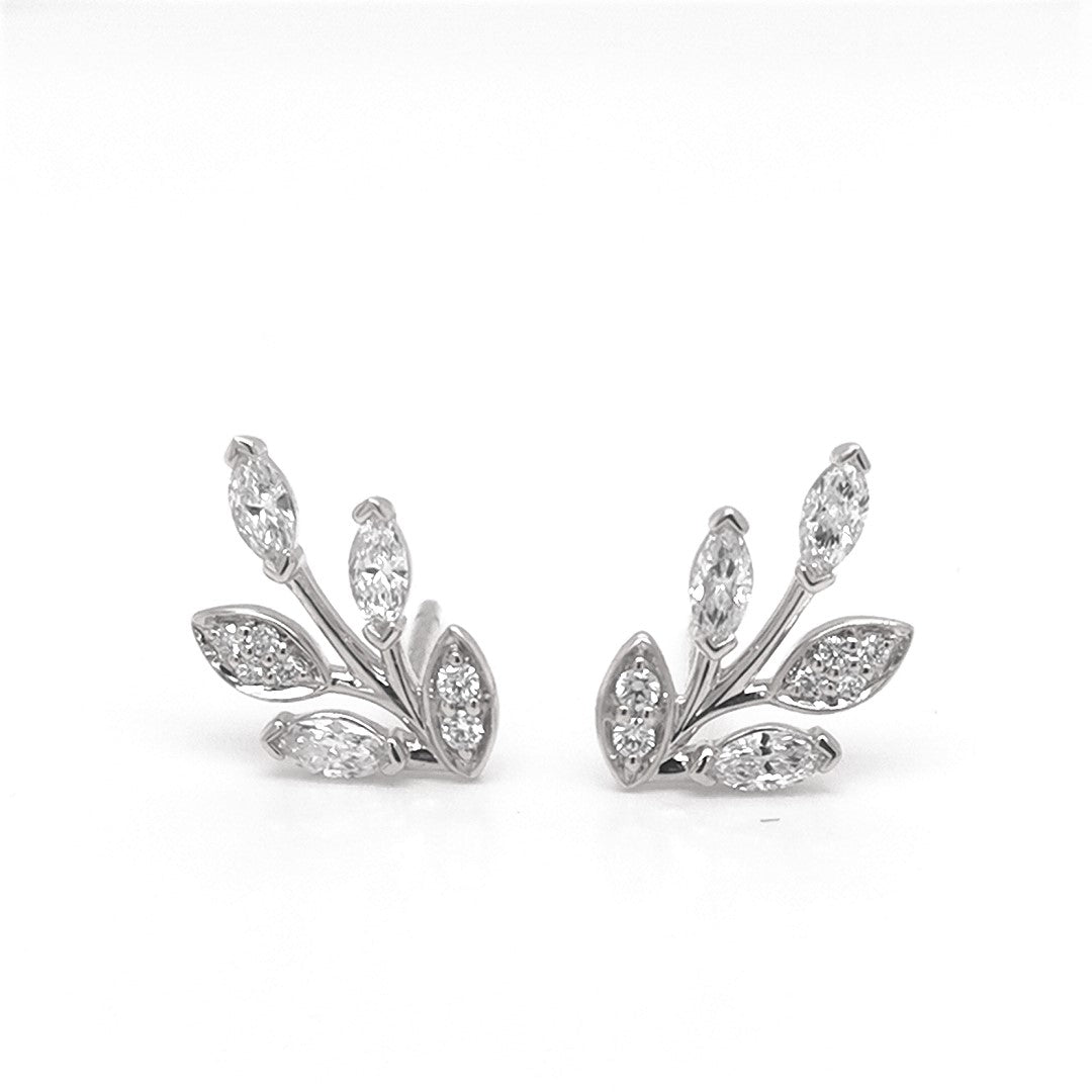 18WG VINE EARRINGS SET WITH MQ 6=0.30CT FG VS-SI AND RBC 12=0.06CT WH SI