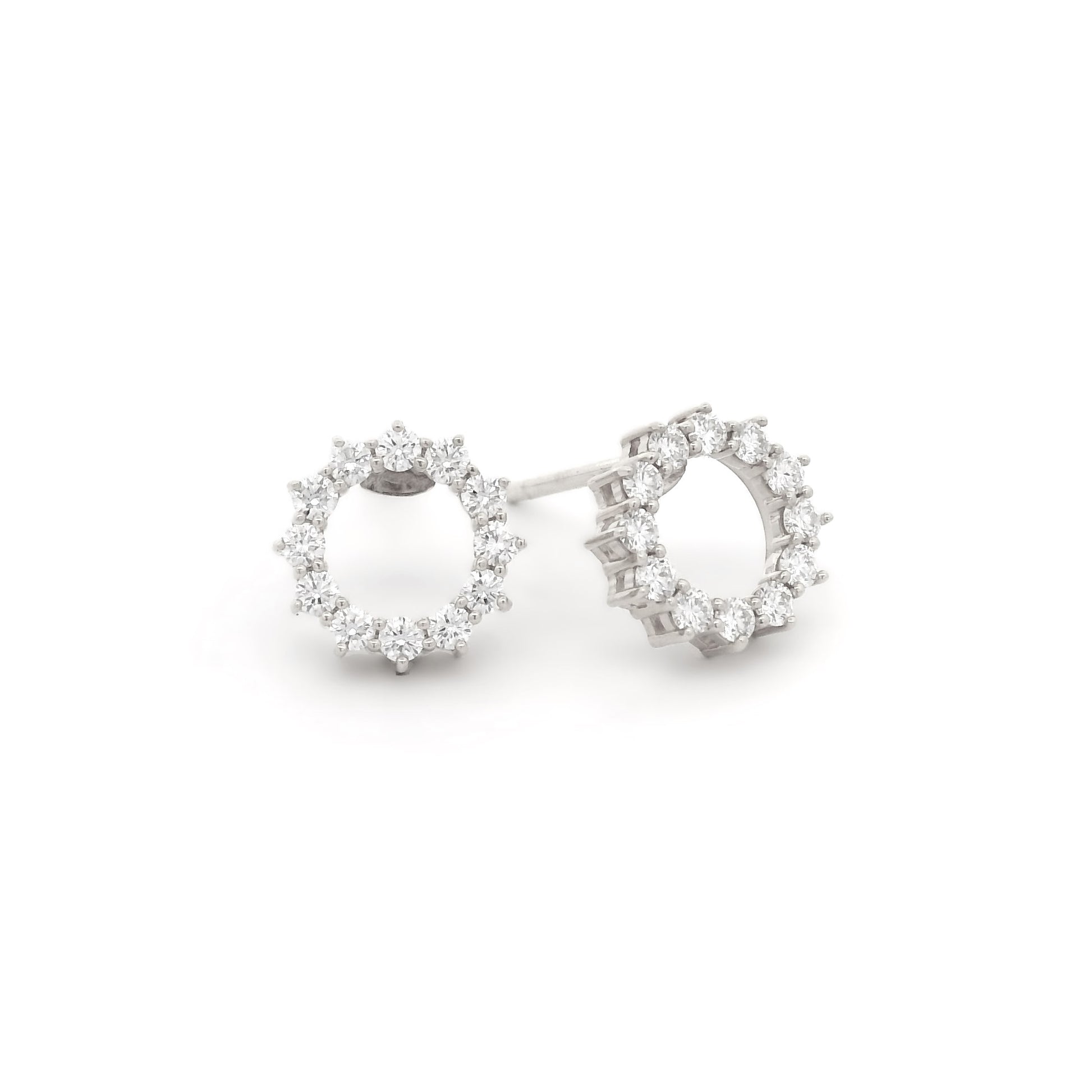 18WG OPEN FLOWER EARRINGS SET WITH RBC 24=0.50CT WH SI