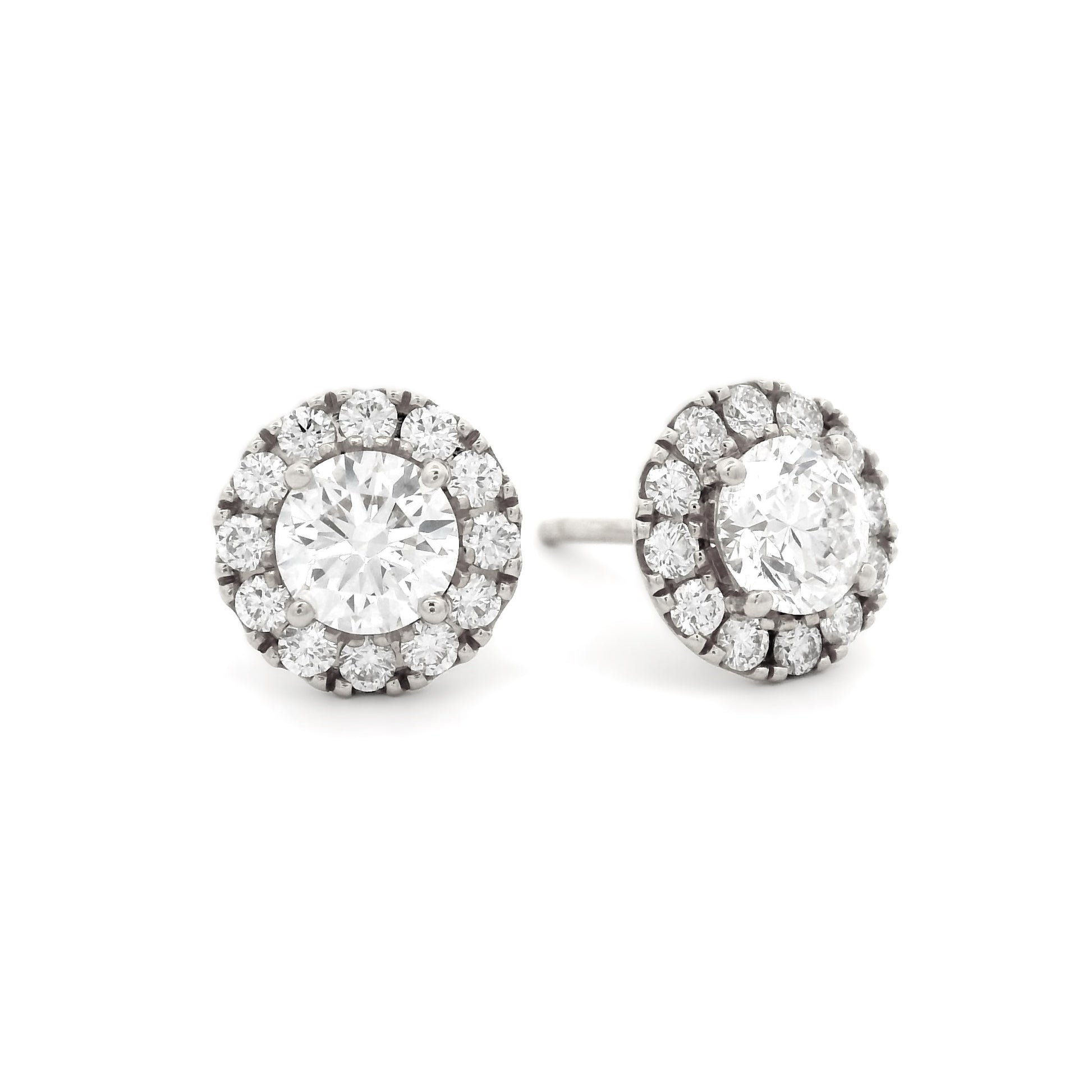 18WG CLAW SET HALO EARRINGS SET WITH RBC 2=1.02CT F SI2 (2206360 & 2207231) GIA & RBC 24=0.40CT WH SI