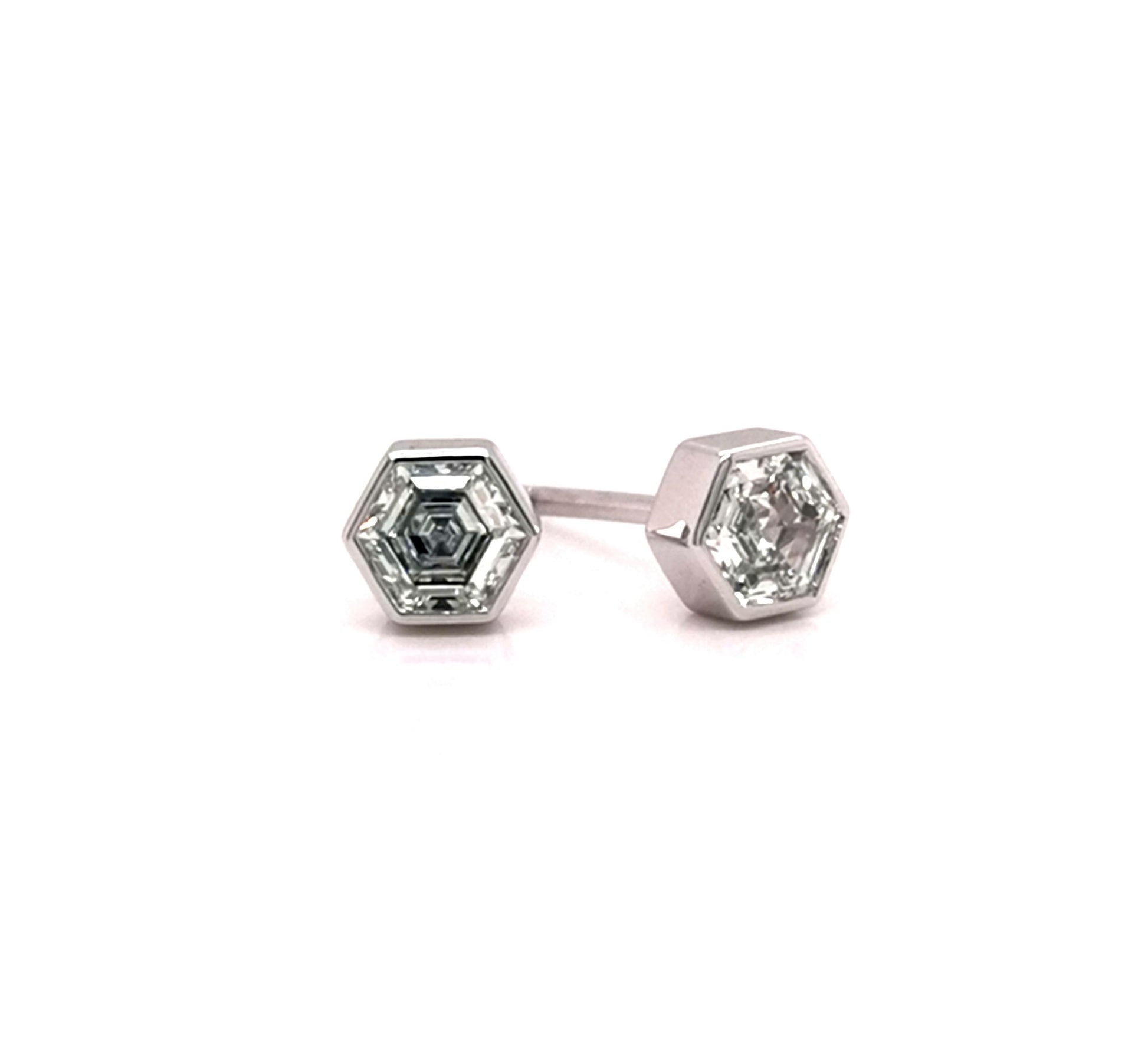 18WG BEZEL SET STUD EARRINGS WITH HEXAGON CUT DIAMONDS 2=0.62CT FG VS (2112808) APPROX 4.70 x 4.10MM