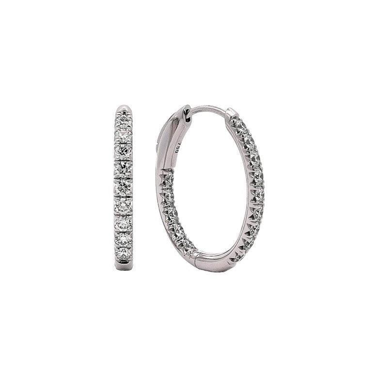 18WG 23MM OVAL IN/OUT HOOPS SET WITH RBC 28=1.00CT WH SI **PUSH BUTTON CLASP**