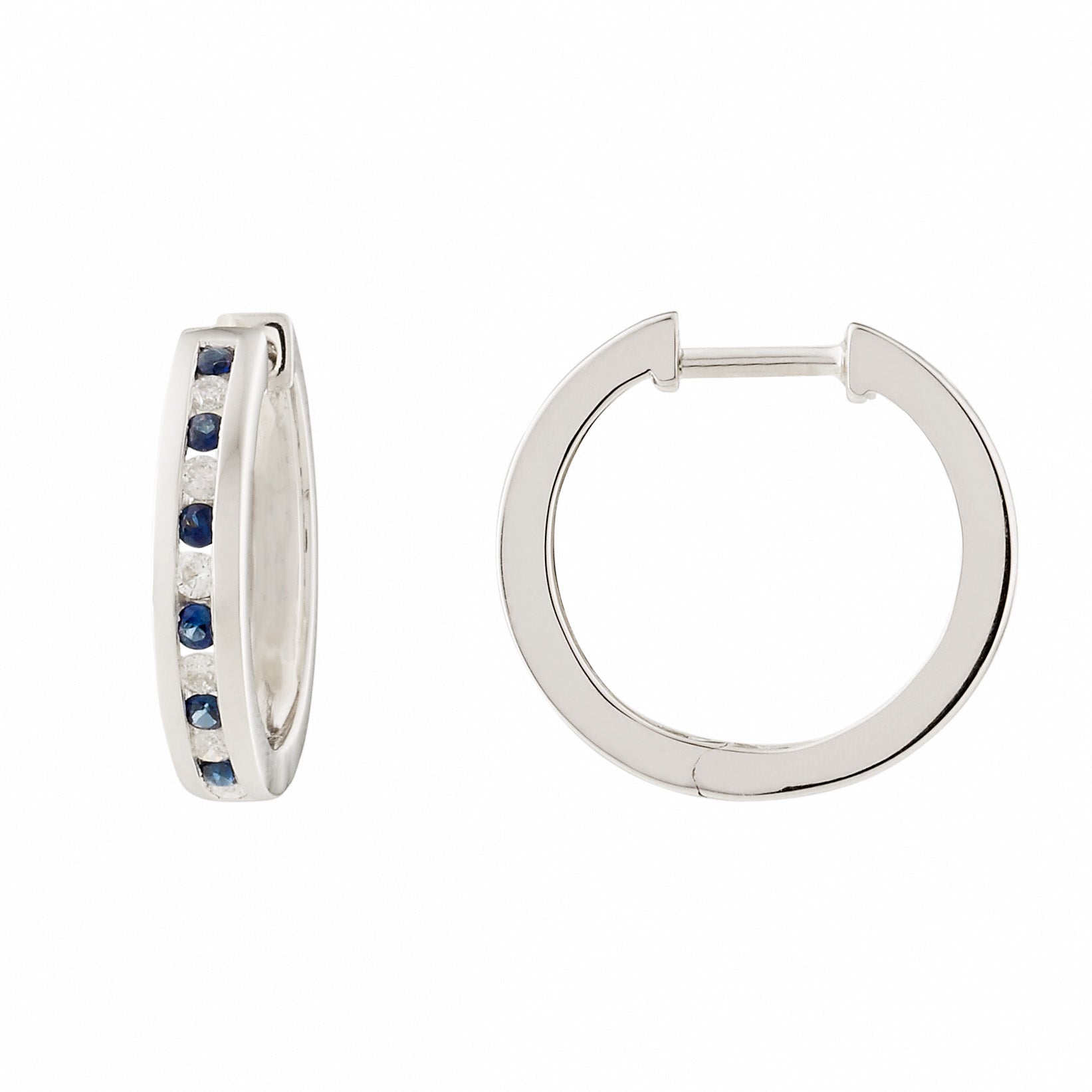 9WG 18MM CHANNEL HUGGIE EARRINGS ALTERNATING 12 ROUND BLUE SAPPHIRES & RBC 12=0.24CT WH PQ