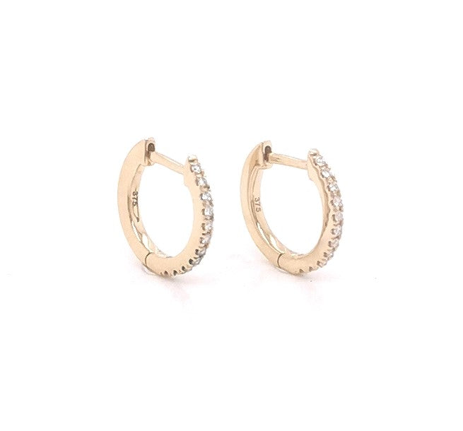 18YG 12MM CLAW SET HUGGIE EARRINGS SET WITH RBC 22=0.10CT DEF VS+