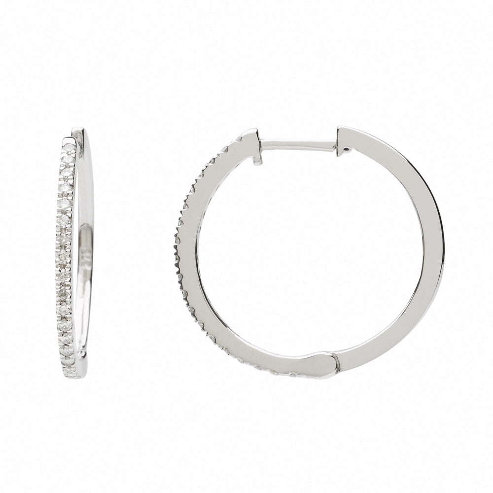 9YG 20MM CLAW SET HUGGIE EARRINGS SET WITH RBC 38=0.16CT WH PQ