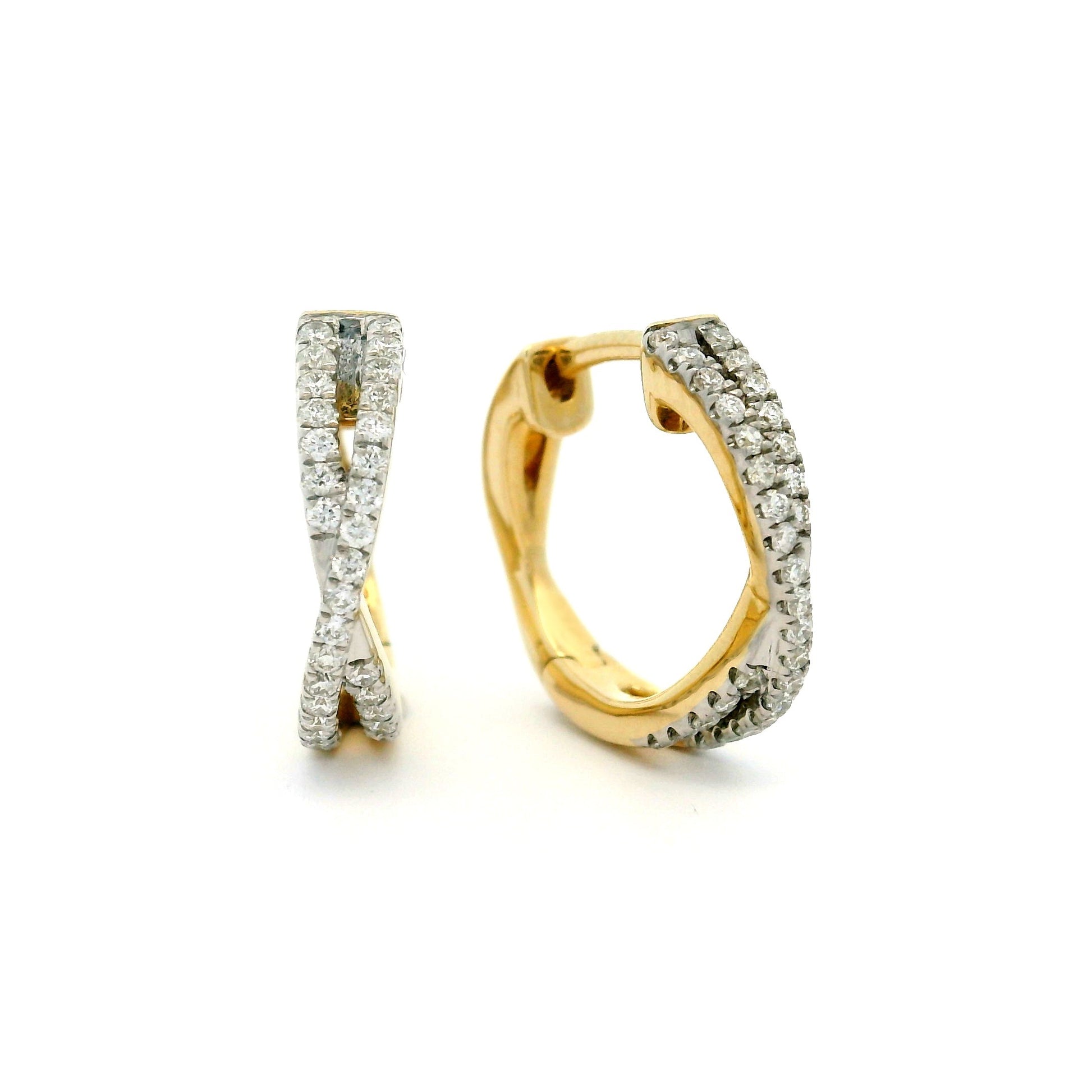9YG 13MM CROSS OVER HUGGIES SET WITH RBC 60=0.20CT WH PQ **RH ON DIAMONDS**