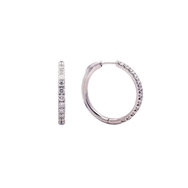 18YG 25MM ROUND HOOPS SET WITH RBC 24=1.00CT WH SI **PUSH BUTTON CLASP**