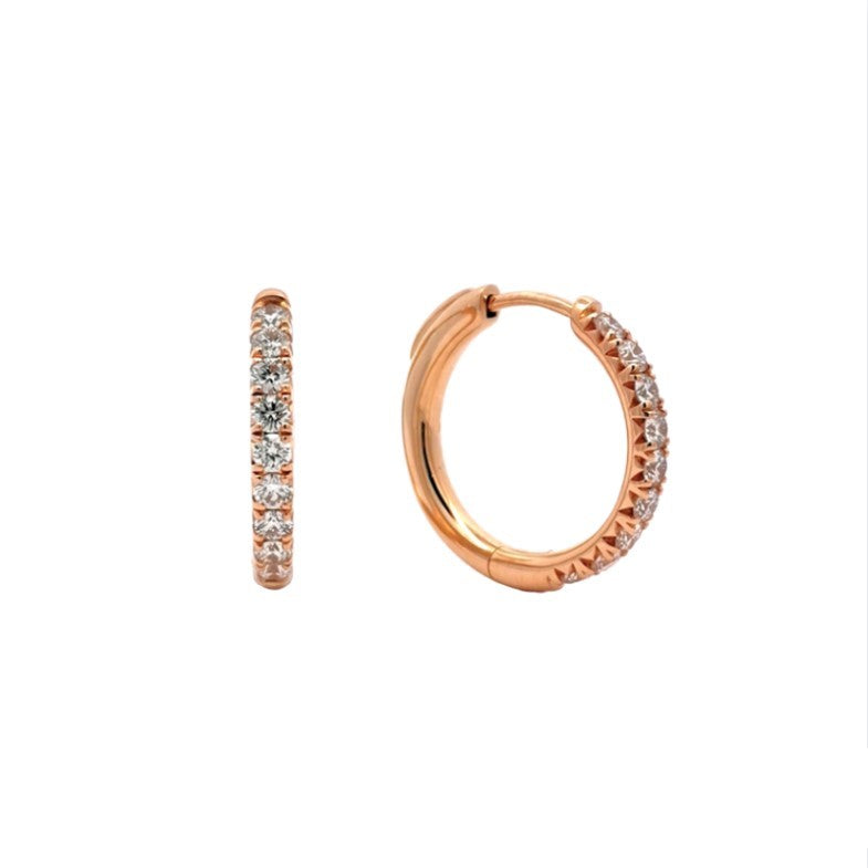 9YG 18MM ROUND HOOPS SET WITH RBC 18=0.65CT WH PQ **PUSH BUTTON CLASP**