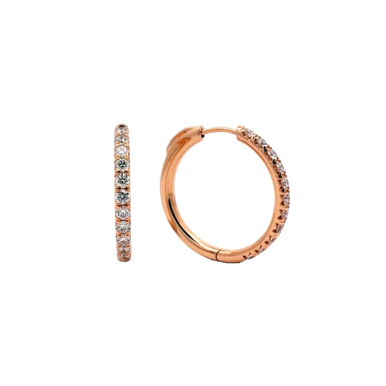 9YG 22MM ROUND HOOPS SET WITH RBC 22=0.80CT WH PQ **PUSH BUTTON CLASP**