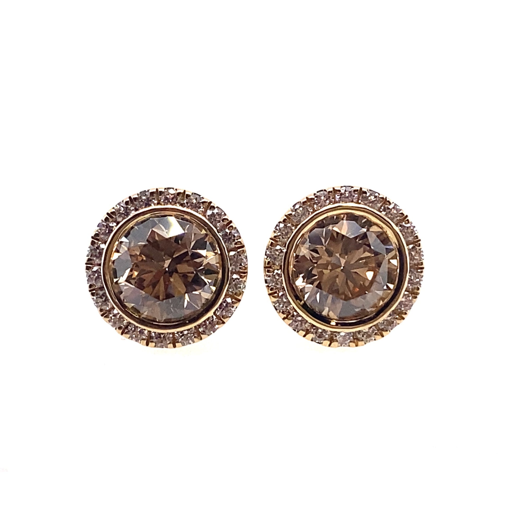 18YG SHARED CLAW HALO STUD EARRINGS SET WITH CHAMP RBC 2=2.11CT C4 VS2 (1910069) AOR & RBC 36=0.30CT NCL ARGYLE #436303
