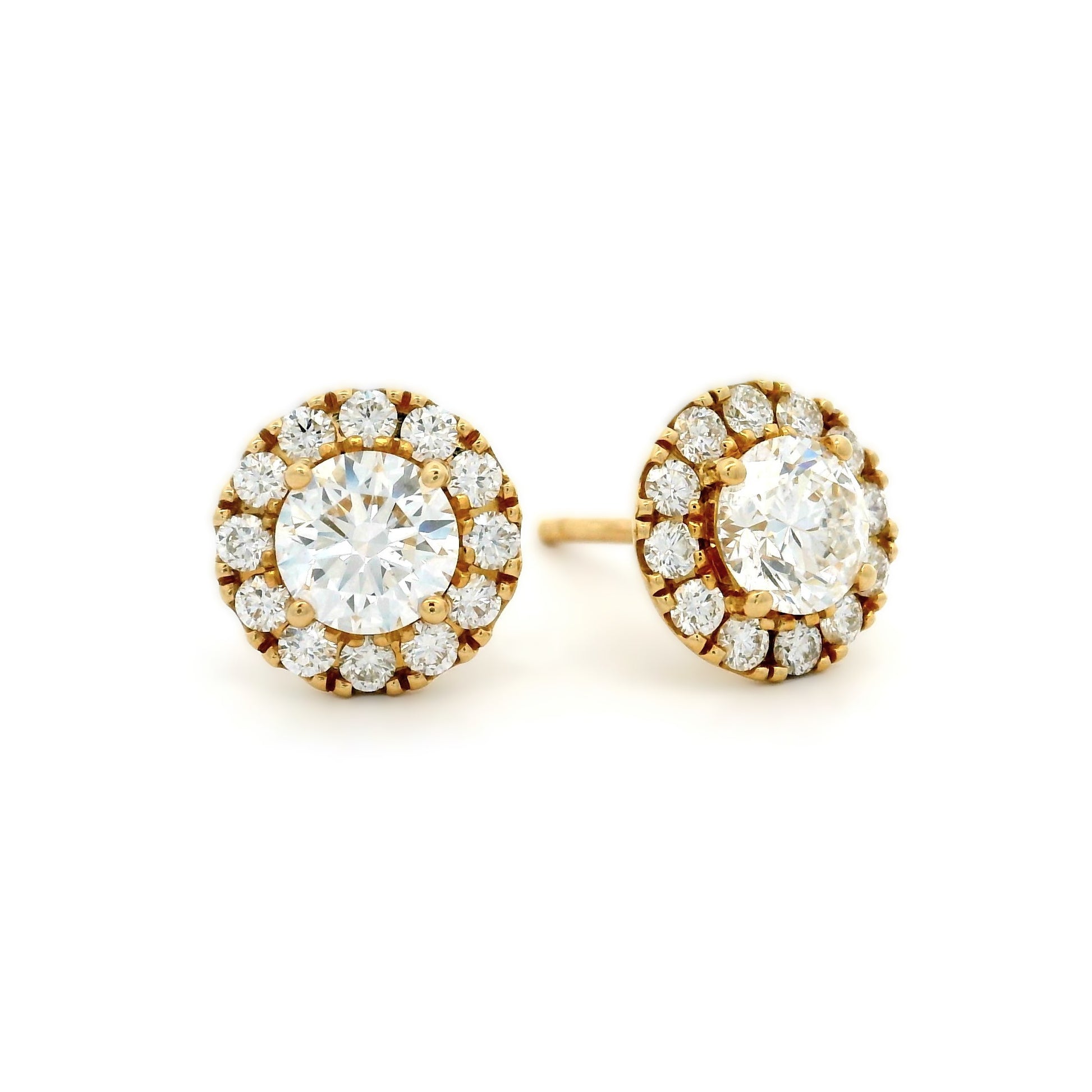 18YG CLAW SET HALO EARRINGS SET WITH RBC 2=1.01CT F SI2 (2206355 & 2202546) GIA & RBC 24=0.40CT WH SI