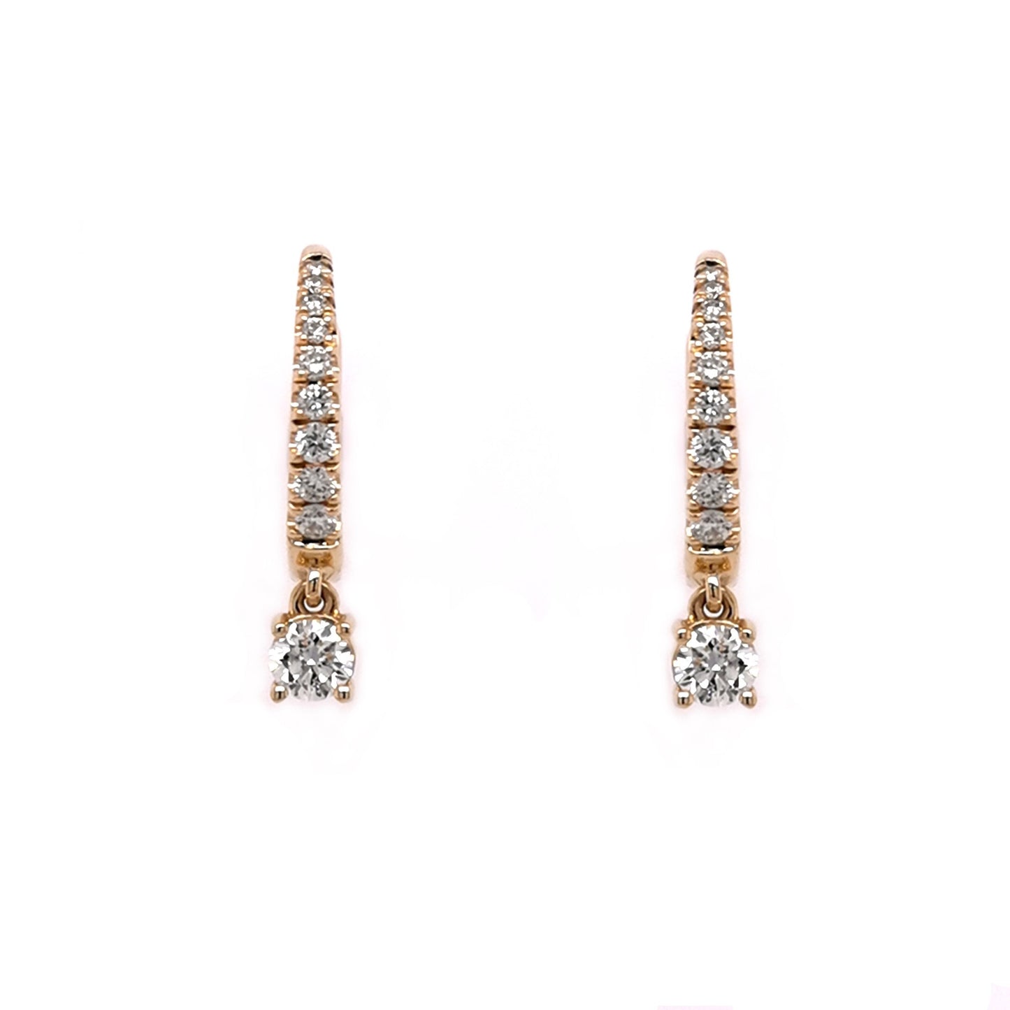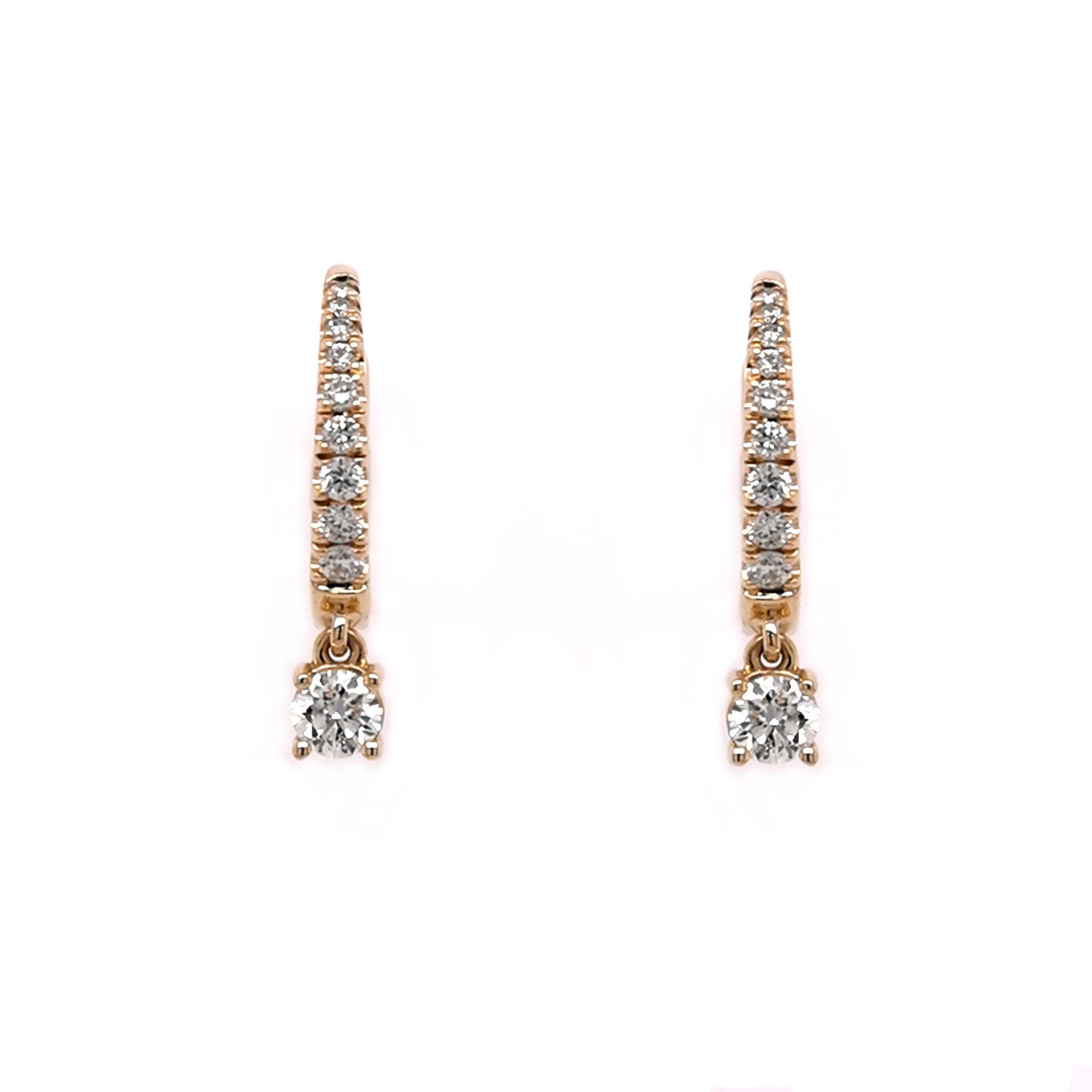 9YG 12MM HUGGIE EARRINGS SET WITH RBC HANGING RBC 2=0.25CT WH PQ (205) & RBC 18=0.10CT WH PQ