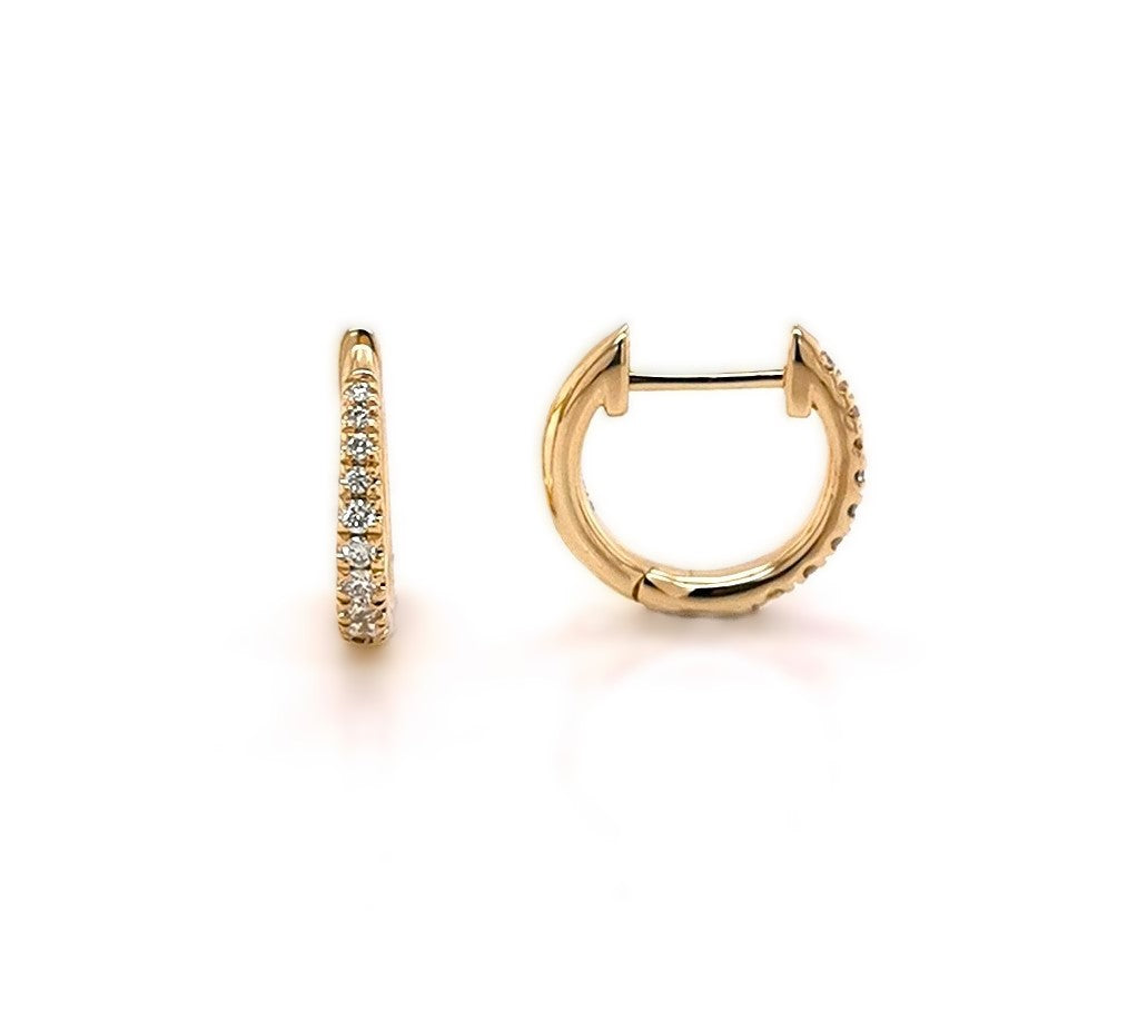 18YG 12MM HUGGIE EARRINGS SET WITH GRADUATED RBC 18=0.12CT DEF VS+