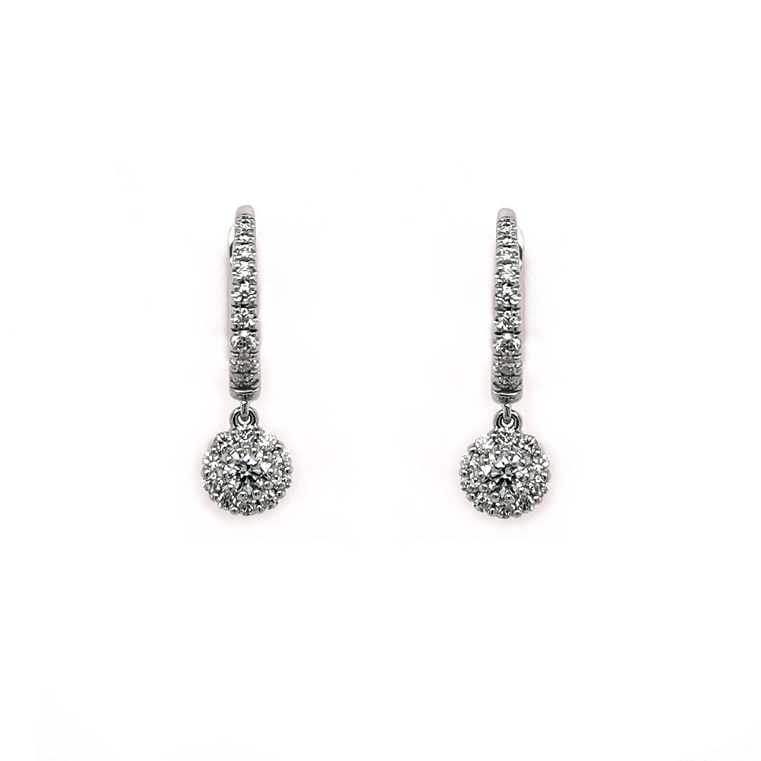 9YG 12MM HUGGIE EARRING WITH CLUSTER DROPS SET WITH RBC 40=0.50CT WH PQ