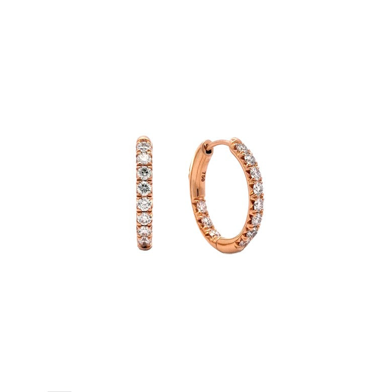 18YG 18MM OVAL IN/OUT HOOPS SET WITH RBC 22=0.80CT WH SI **PUSH BUTTON CLASP**