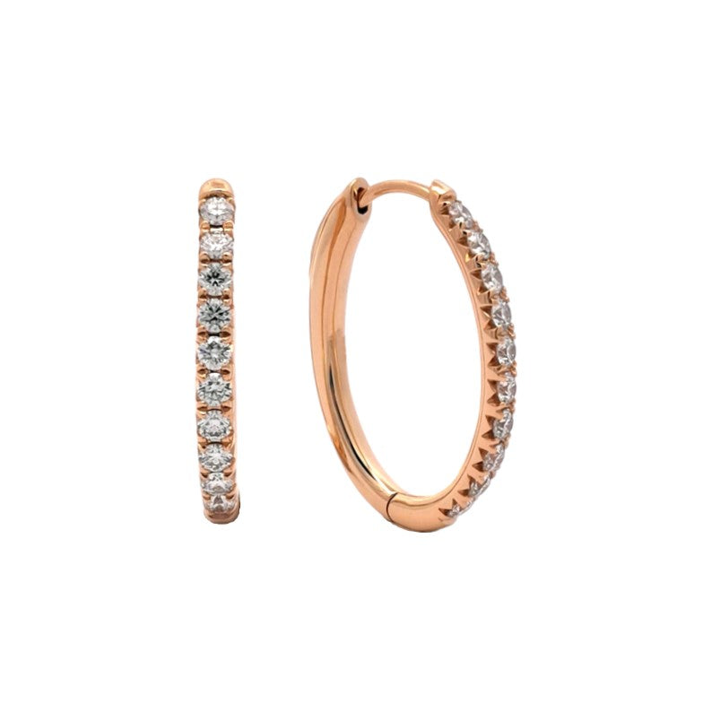 9YG 24MM OVAL HOOPS SET WITH RBC 20=0.75CT WH PQ **PUSH BUTTON CLASP**