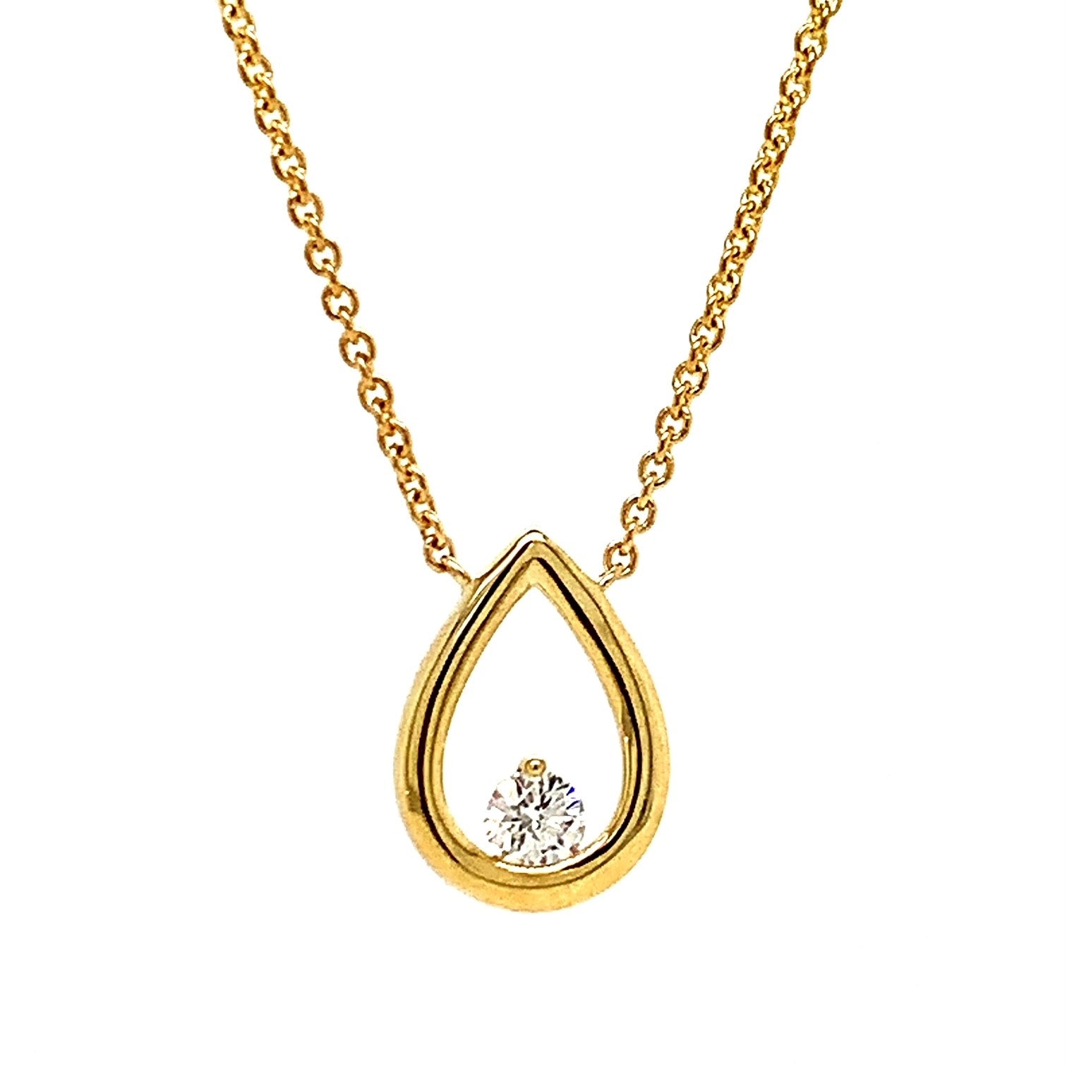 9RG OPEN PEAR NECKLACE SET WITH RBC 1=0.10CT WH PQ **9RG ITALIAN CHAIN ADJUSTABLE 42-45CM**