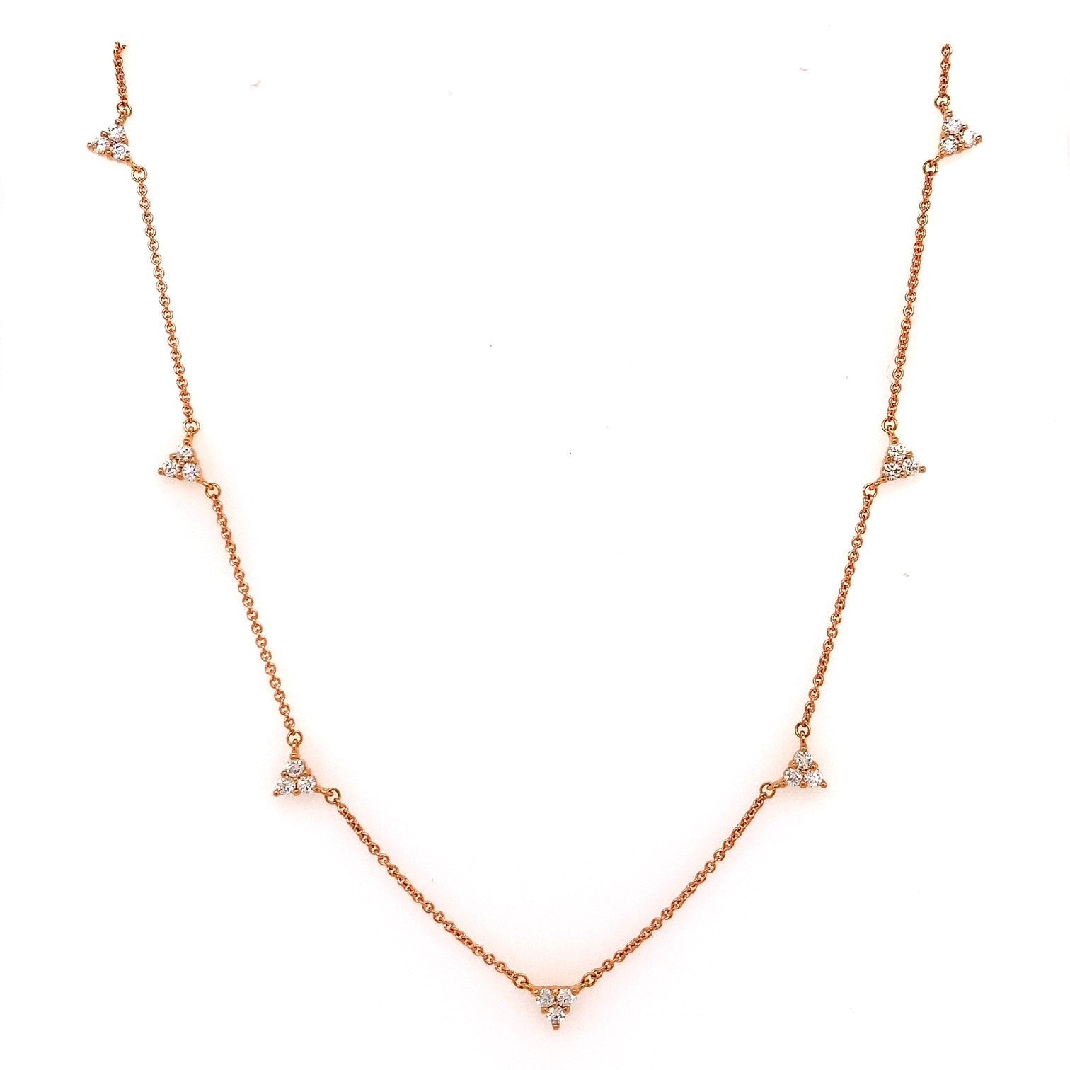 9RG THREE DIAMOND TRIANGLE NECKLACE SET WITH RBC 21=0.50CT WH PQ **9RG ITALIAN CHAIN ADJUSTABLE 42-45CM**