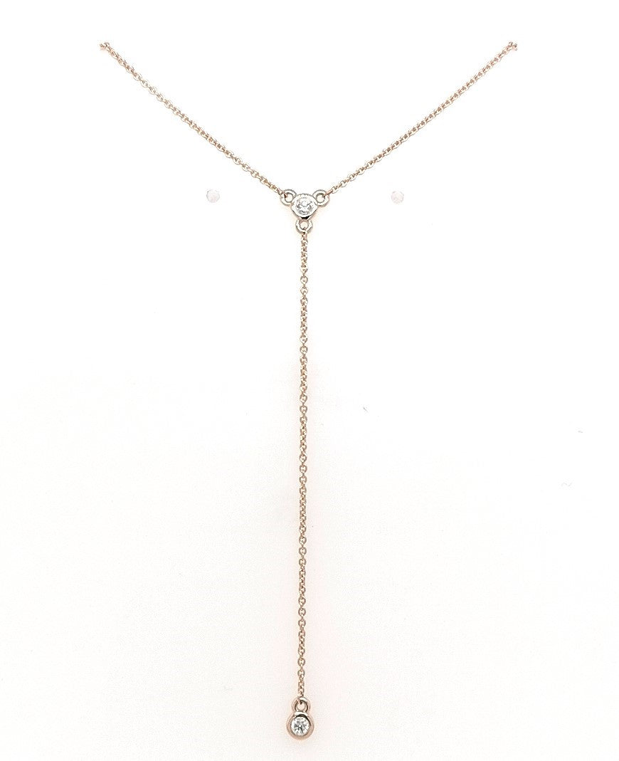 9RG Y DROP NECKLACE SET WITH BEZEL SET RBC 2=0.10CT WH PQ **9RG ITALIAN CHAIN ADJUSTABLE TO 42-45CM**