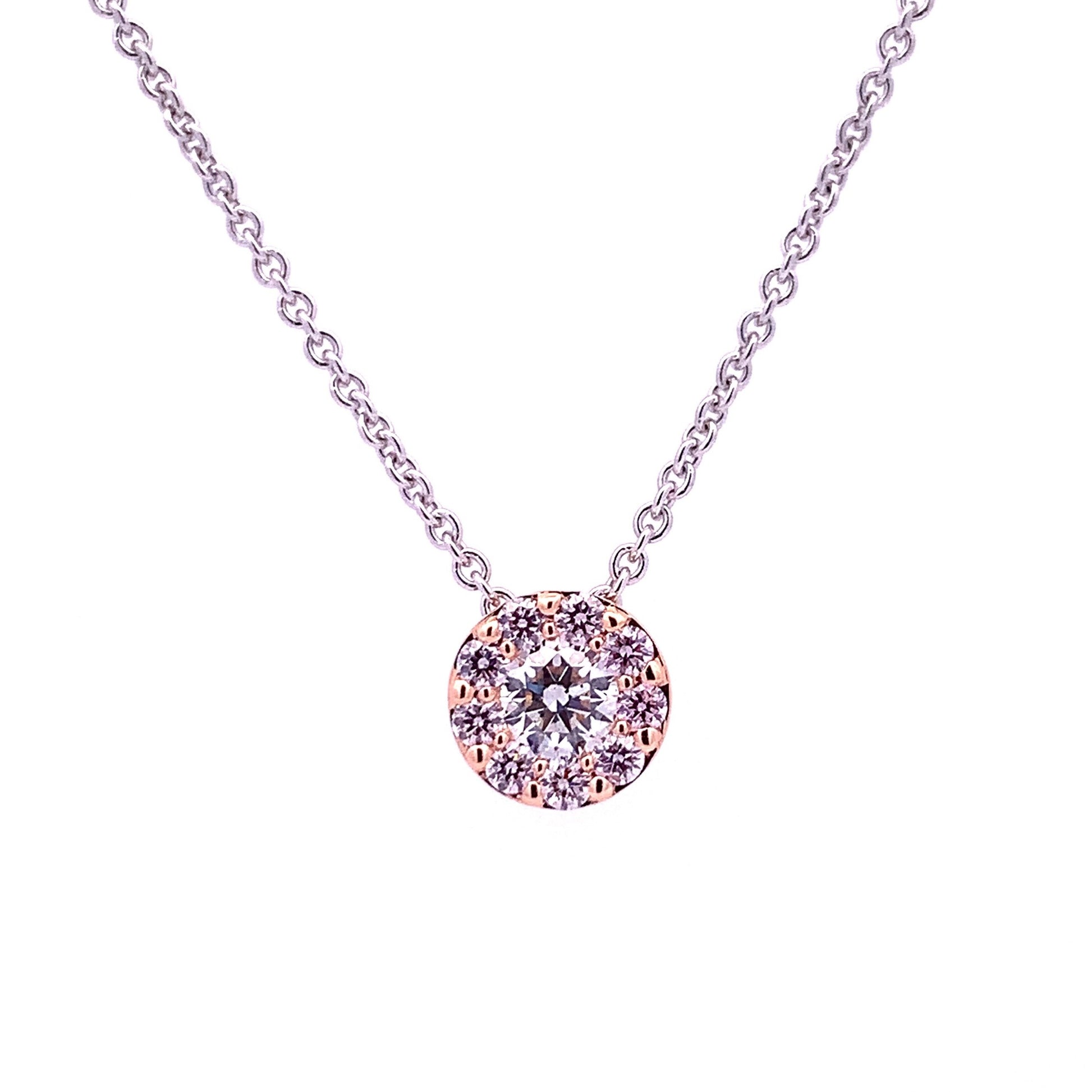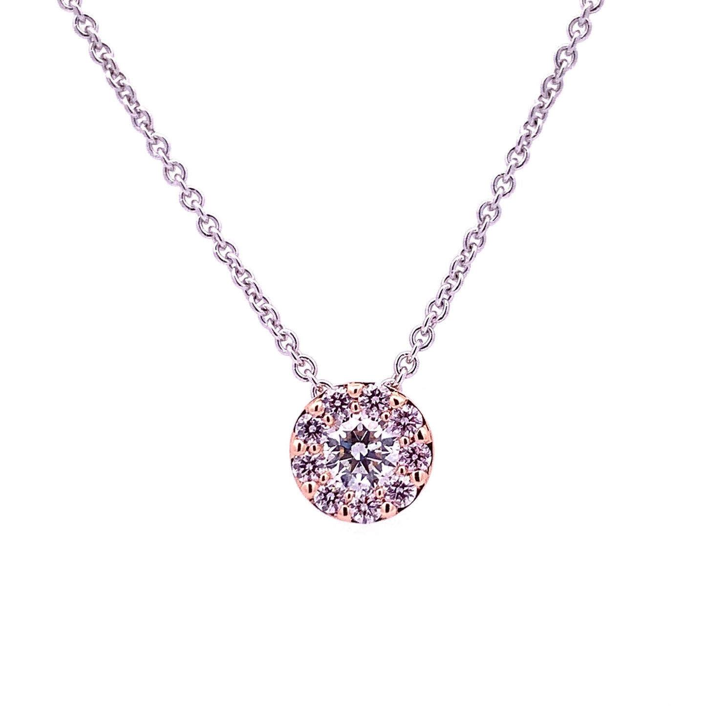 **LAST ONE** 18RG HALO SLIDER NECKLACE SET WITH RBC 1=0.16CT DEF VS-SI1+ (876) & RBC 9=0.11CT 8-9P/PR ARGYLE LOT#459407 **18WG ITALIAN CHAIN ADJUSTABLE 42-45CM**