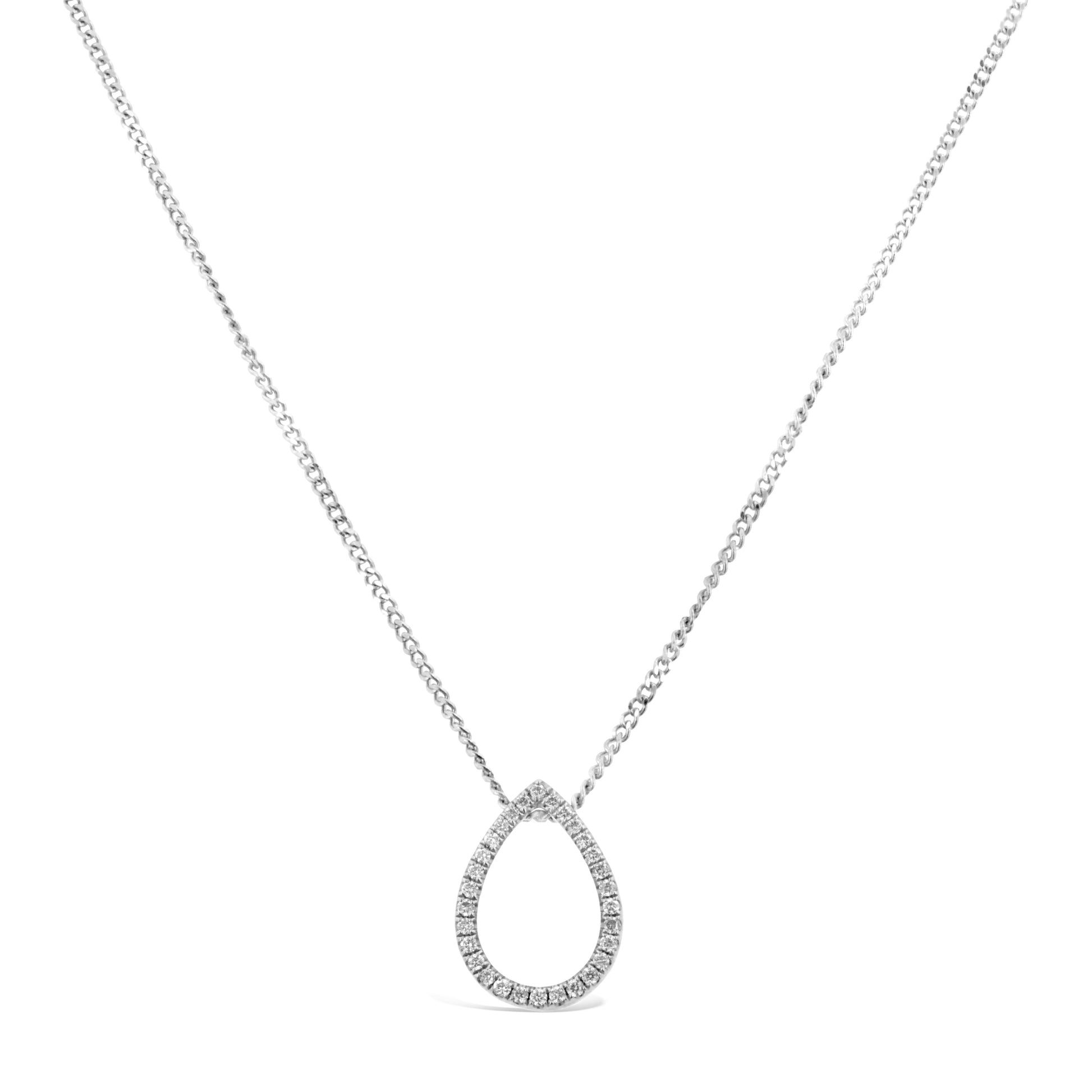 9WG 12.5mm OPEN PEAR SHAPE PENDANT SET WITH RBC 30=0.08CT WH PQ **9WG ITALIAN CHAIN ADJUSTABLE TO 42-45CM**