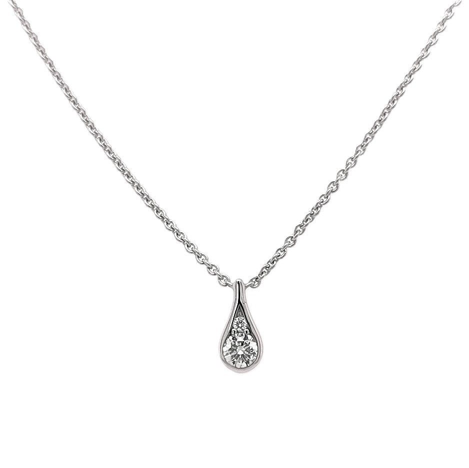 9WG TEARDROP NECKLACE SET WITH RBC 2=0.12CT WH PQ **9WG ITALIAN CHAIN ADJUSTABLE 42-45cm**