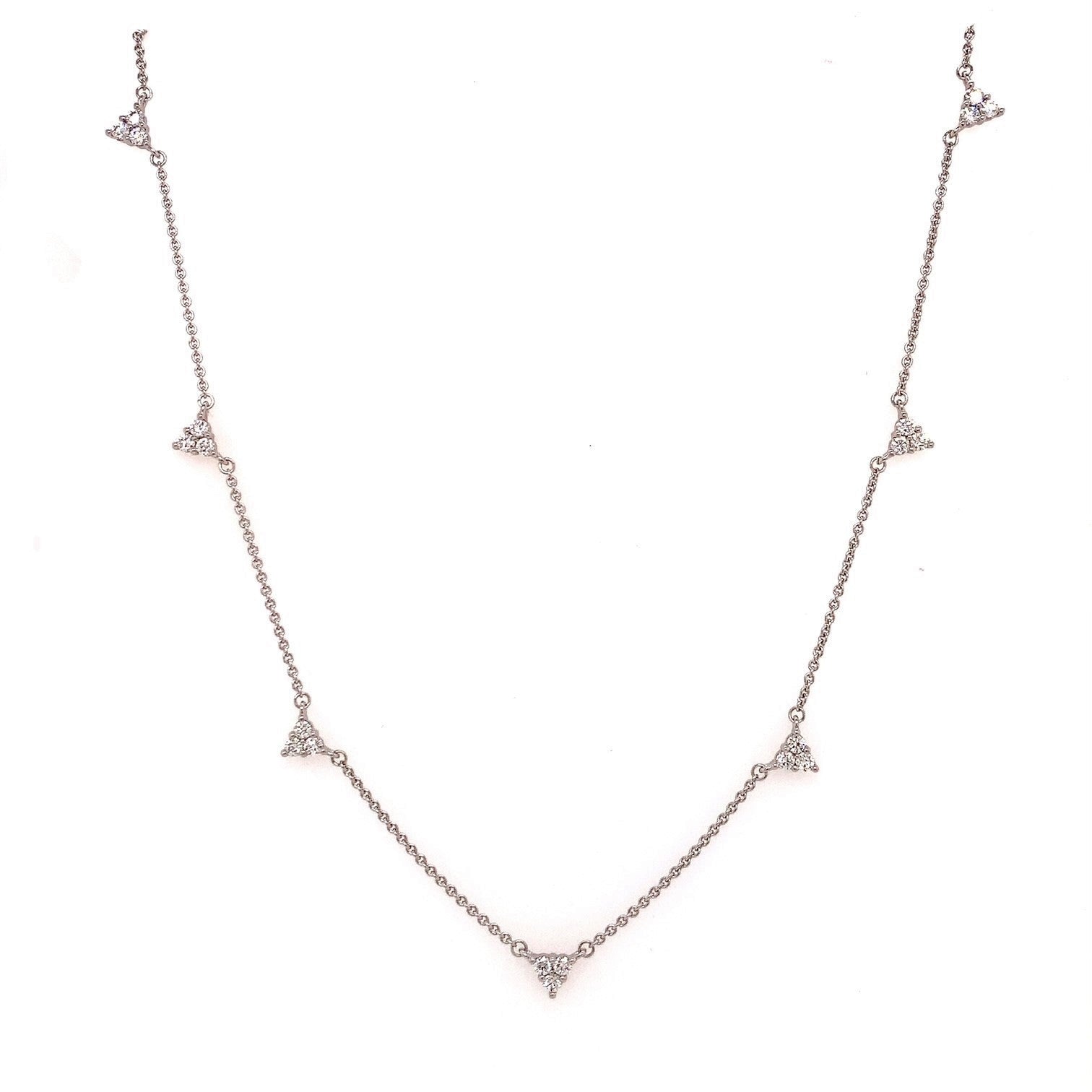 9WG THREE DIAMOND TRIANGLE NECKLACE SET WITH RBC 21=0.50CT WH PQ **9WG ITALIAN CHAIN ADJUSTABLE 42-45CM**
