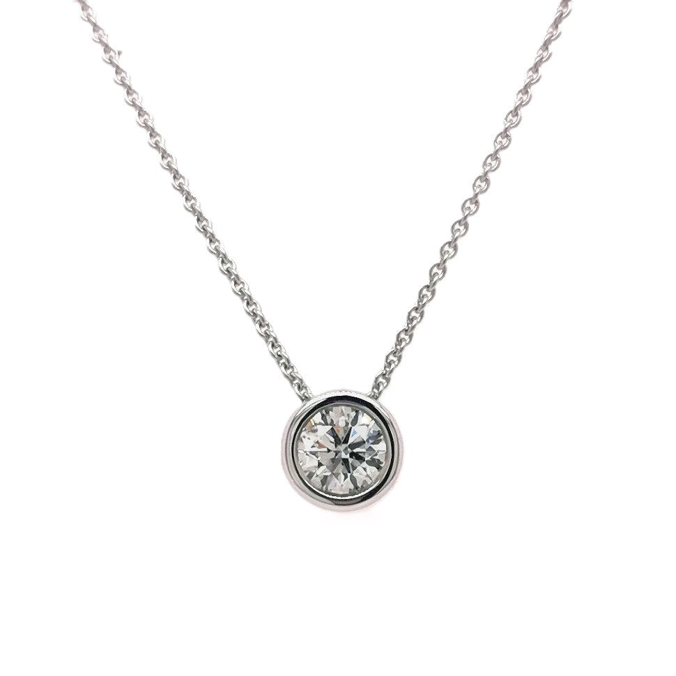 9WG SLIDER BEZEL NECKLACE SET WITH RBC 1=0.50CT H P1 (2202523) GIA **9WG ITALIAN CHAIN ADJUSTABLE TO 42-45cm**