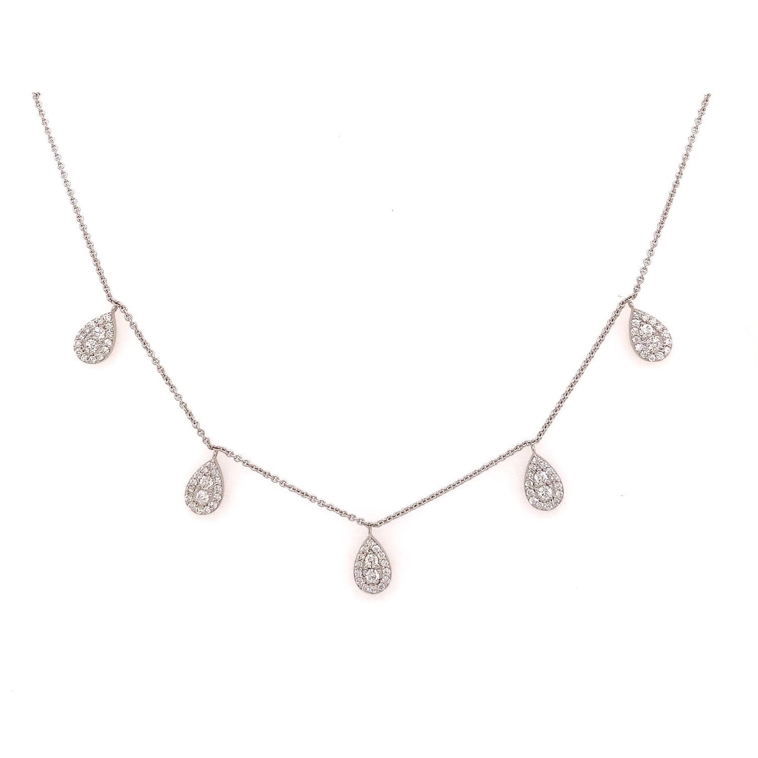 9WG PAVE ROUND SWINGING NECKLACE SET WITH RBC 45=0.35CT WH PQ **9WG ITALIAN CHAIN ADJUSTABLE 42-45CM**